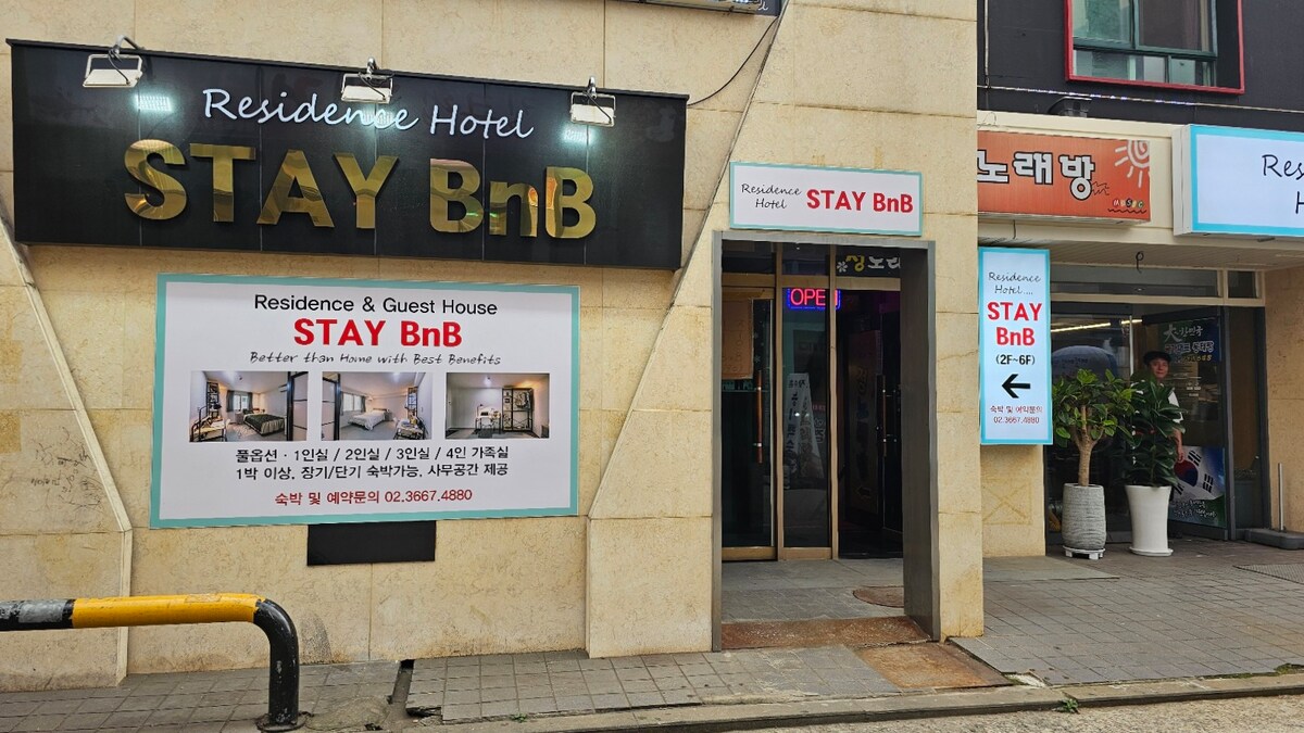 🖐이 숙소는 단독 화장실이 있는 원룸형 숙소 입니다. 1층에 있는 공용공간에는 세탁실과 주방이 있고, 🌿테이블에 앉아 창밖을 보며 커피나 간식을 드실 수 있는 공간도 마련되어있습니다. 아늑한 공간에서 편안하고 좋은 시간을 보내시길 바랍니다 :) 🚇2호선 신림역 8번출구에서 도보 2분 🚌공항버스 도보 1분 🎈홍대입구역 20분, 강남역 16분 🎈고척돔 20분, 명동 30분 🎈롯데시네마,신림순대타운, 르네상스쇼핑몰,타임스트림 등 놀거리,볼거리,먹거리 등 다양 🎈편의점, 올리브영 2분 🫧단독 개별화장실이 있는 원룸 형태의 숙소 (각 객실 도어락 비밀번호 설정) ⏰️체크인 오후 4시 이후 체크아웃 오전 11시 비대면 셀프 체크인,체크아웃으로 편하게 체크인 하세요 :) 주차가능대수가 많지않아 사전예약제 입니다! 예약전 미리 주차문의 해주세요 :)