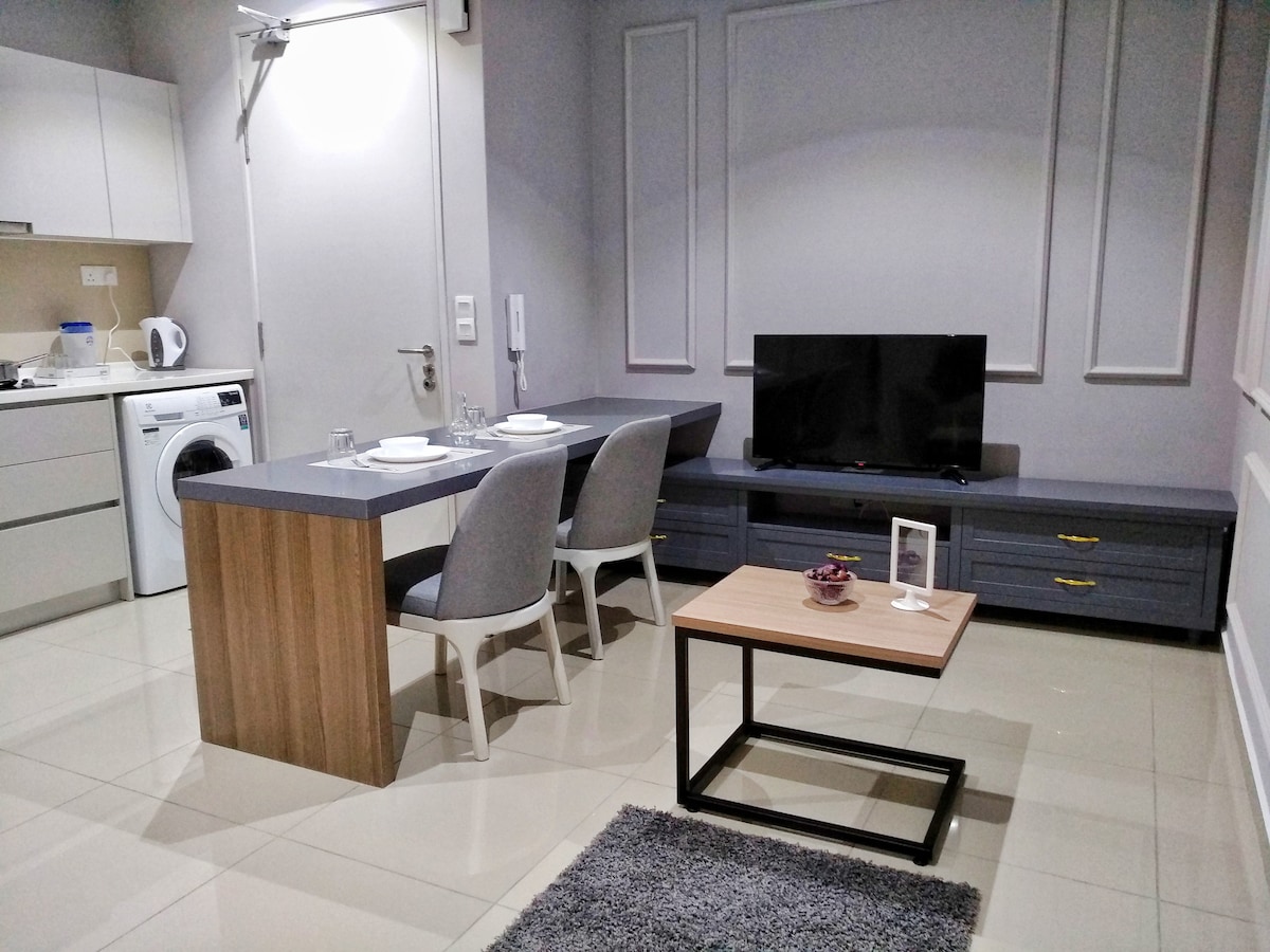 Í þágu heilsu og öryggis allra gesta minna sótthreinsum við húsið okkar reglulega. Heimilið okkar er lífstíll sem er innblásinn af London sem er frábærlega hannaður. Nútímaleg, flott og með fáguðum innréttingum til að fanga kjarnann í konunglegu lífi í hjarta ultrapolis i-City. Fullkomið með einstökum lífsstílsréttindum eins og nálægð við Central i-City Mall. Heimilið okkar er fullkominn staður til að láta eftir þér fullkominn tómstundir og ánægju.