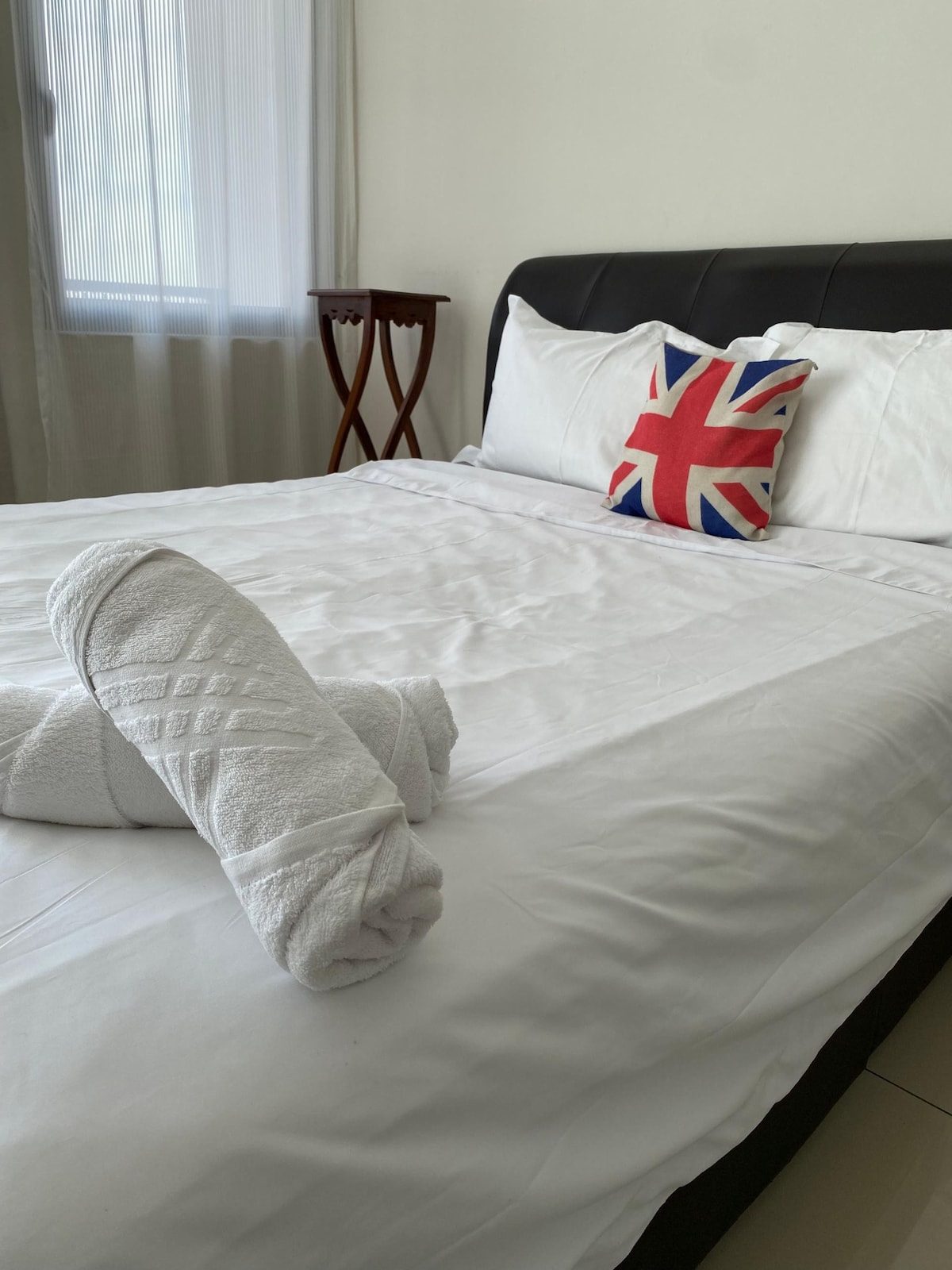 2 svefnherbergi, 2 baðherbergi lúxus þjónustuíbúð. ótakmarkað 800mbps (Unifi) háhraðanet.43 tommu snjallsjónvarp í ensuite svefnherberginu.55 tommu snjallsjónvarp í stofunni. Eldhúsaðstaða með innbyggðu gashelluborði, ísskáp, örbylgjuofni. Dyraskref í kvikmyndahús , F&B innstungur og Lotus í paradigm-verslunarmiðstöðinni. Easy access ,Located in the same building with Le Meridien Hotel roof top bar, best view in town).24 hours 3 tier security with access card to enter building with private carpark