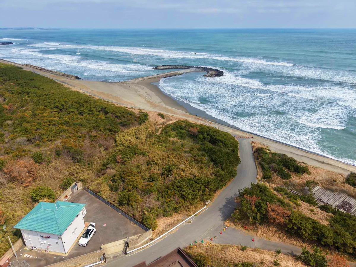 Þetta er einkarekin orlofsvilla við ströndina í Ibaraki-héraði með útsýni yfir Kyrrahafið, í 2 klst. akstursfjarlægð frá Tókýó. Það eru engin einkaheimili nálægt villunni svo að þú getur spilað tónlist og dansað hvar sem þú vilt, eins og garðinn eða stofuna, algjörlega einkarekið draumarými! The two-hæða Seaview Villa er á um 443 m2 landsvæði og er aðeins í 1 mínútu göngufjarlægð frá ströndinni. 180 gráðu sjávarútsýni, finndu sjávarbrisuna, sjáðu draumkennda sjávarútsýnið og sjáðu stjörnuhiminn. Svefnherbergi 3, þar af 2 í japönskum stíl (3 fastagestir hver), 1 venjulegt svefnherbergi (4 fastagestir, tvö 1,4 m breið rúm).Það er svefnsófi í stofunni Þú getur lagt 3 til 5 bílum í húsinu 10 mínútna akstur til Kashima Asahi-stöðvarinnar, næstu lestarstöðvar. Næsta verslun: 7 Eleven Ibaraki Asahimura verslun (7 mínútna akstur). Næsta matvöruverslun: JA Special Product Direct Sales Office Sangreen Asahi (8 mín akstur)/Taiyo Big House Akuta (10 mín akstur). ◼ Þar sem aðstaða okkar er staðsett á fallegu svæði í náttúrunni búa hér dýr eins og skordýr, köngulær o.s.frv. óháð árstíð.Við þrifum aðstöðuna reglulega og ítarlega og förum yfir með skordýraeyði en það er ekki hægt að koma í veg fyrir að skordýr komist inn. Vinsamlegast ekki nota aðstöðuna ef þú hefur áhyggjur af skordýrum.