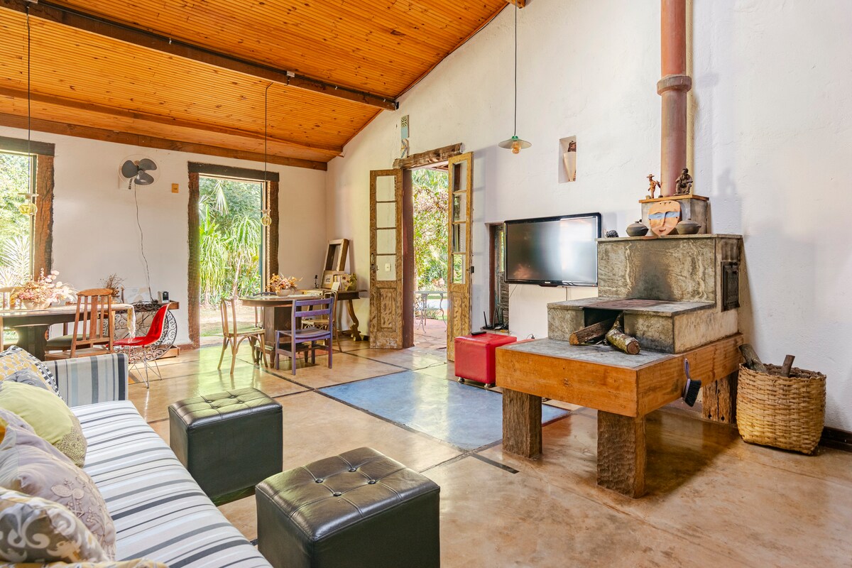 Þetta er „lítið viðarhús“ sem er búið til með eigin höndum og vill deila jafnvægi með samhenginu og ytri landslaginu. SABI - einfaldleikinn og WABI - kyrrðin. Samband nándarmarka milli þeirra sem finna fyrir notalegheitum og umhverfisins. 40 mínútur frá Belo Horizonte, í Recanto de Aldeia hverfinu, 1,5 km frá miðborg Casa Branca, 750m frá fallegum fossi, frábær til að endurnýja orku og 30 km frá Inhotim.