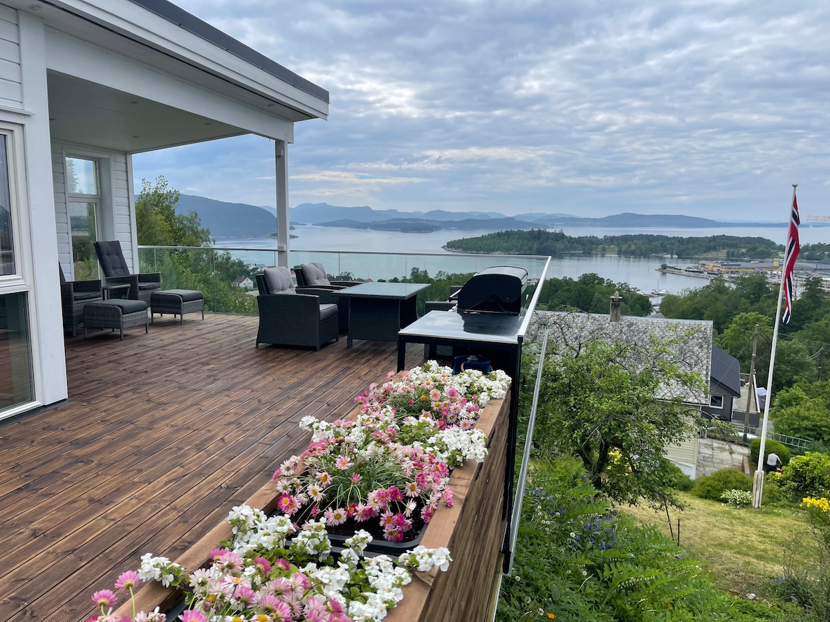 ✨ Njóttu friðs, þæginda og ótrúlegs útsýnis á þessu stílhreina heimili með jacuzzi og fallegum sólsetrum. Fullkomið fyrir afslöngun, gæðastund og eftirminnilegar upplifanir – hvort sem er innandyra eða utandyra. Staður sem þú munt vilja snúa aftur til. 🌅 Stutt í Pulpit Rock, Lysefjorden og Stavanger. 🌅 Aðalatriði: • Ótrúlegt útsýni og töfrandi sólsetur • Einka nuddpottur – fullkominn allt árið um kring • Friðsæll og skjólgóður staður • Nútímalegt, fullbúið eldhús • Þægileg rúm og notalegar stofur