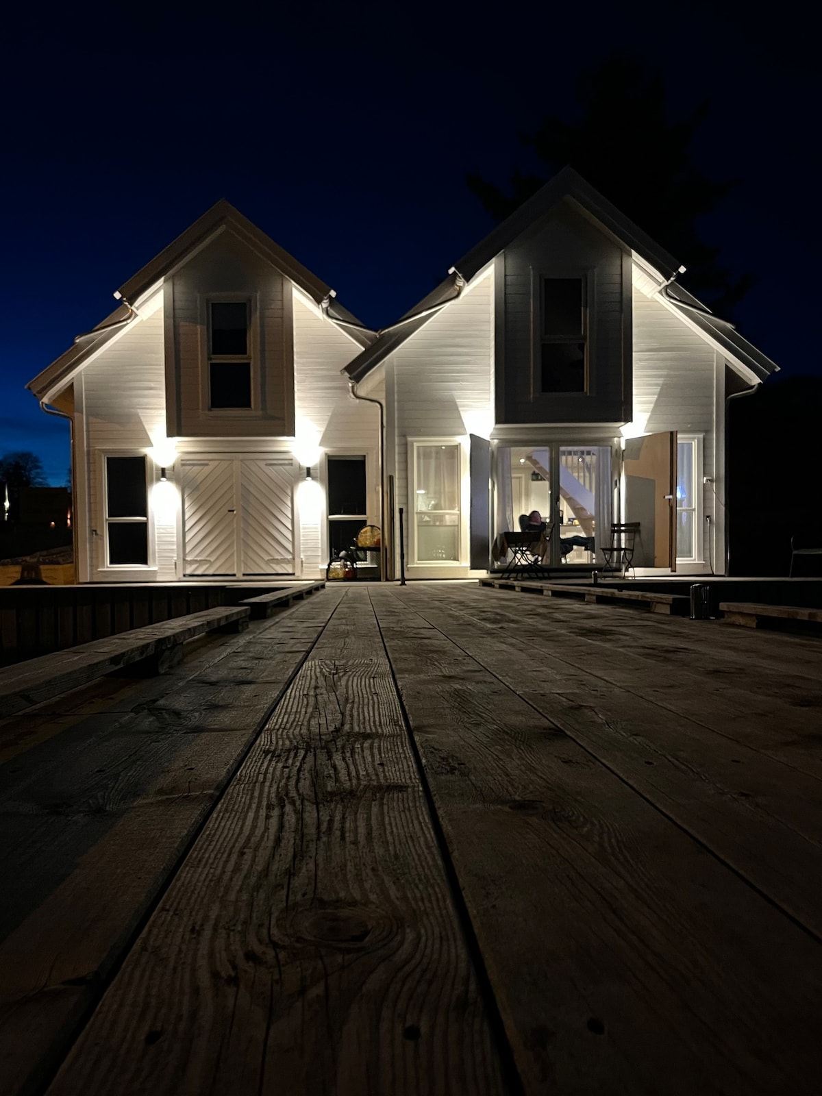 hús við stöðuvatn við fjörðinn