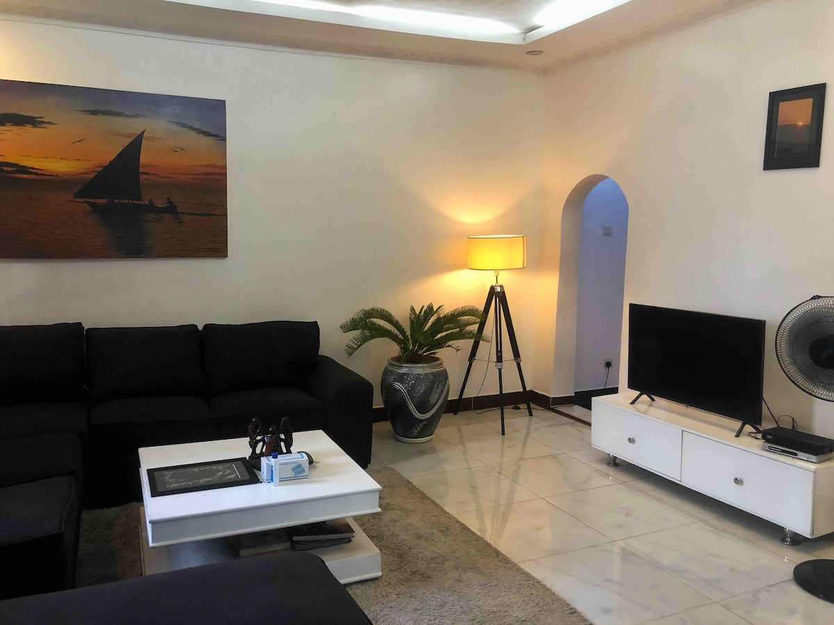 Stökktu í notalega tveggja svefnherbergja afdrepið okkar í hjarta Kijitonyama. Njóttu ókeypis þráðlauss nets, Azam sjónvarps, fallega hannaðs eldhúss, þægilegra rúma og afslappandi vistarvera. Fullkomið fyrir fjölskyldur, pör eða ferðalanga sem eru einir á ferð og leita sér að heimili fjarri heimilisupplifun. Þetta er tilvalinn staður fyrir þig hvort sem þú ert að ferðast vegna viðskipta eða köllunar eða bara til að slaka á.