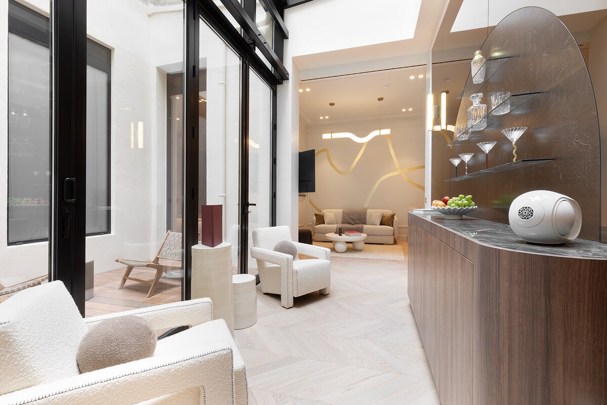 Welcome to My Skydome, a unique place in the heart of the upper Marais. This 200 m2 flat is the result of an ambitious project by an Italian architect and a Parisian decorator to create an exceptional living space. The glass roof covering an 1896 Parisian courtyard is enhanced by the use of original materials such as wood and stone. After a day of sightseeing in the department stores and museums of Paris, the 200m2 My Sky Dome is the perfect place to relax and recharge.