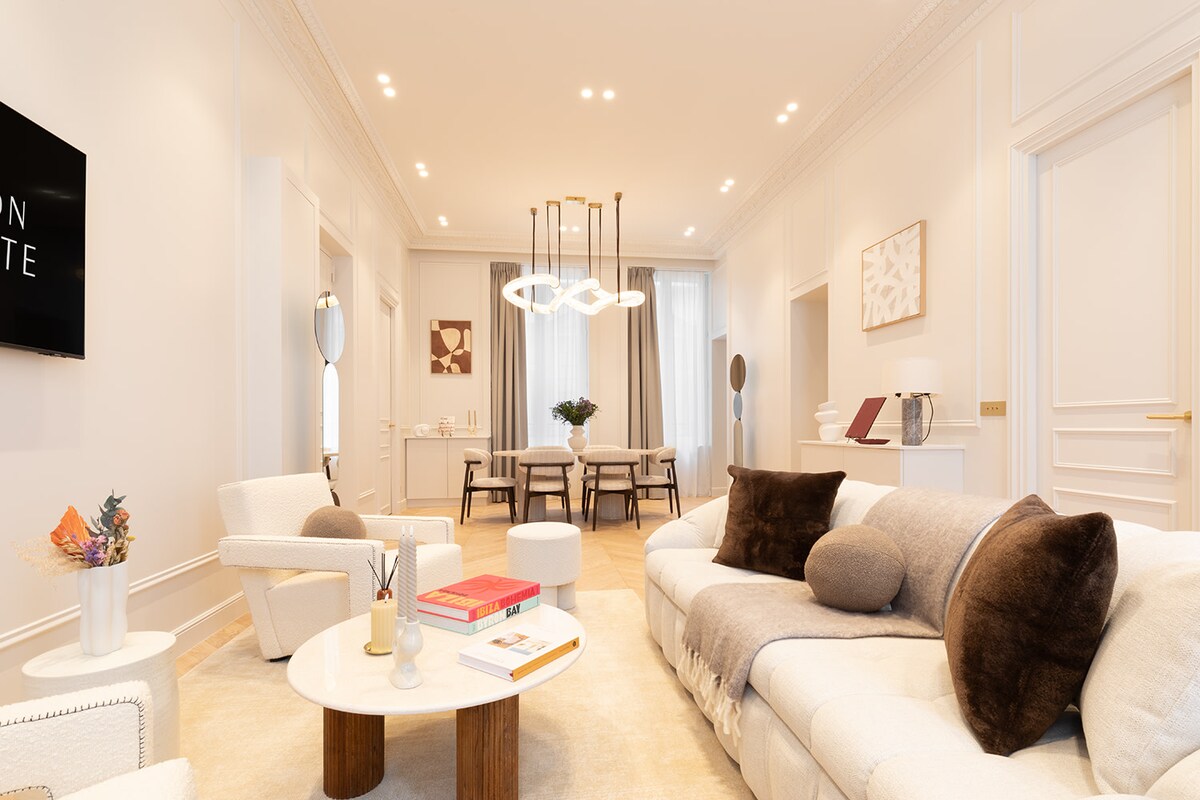 Welcome to your luxurious home away from home, perfectly situated in the heart of Paris, just a few minutes' walk from the Louvre, the Opera, and the Seine. This stylish and contemporary apartment features 4 separate bedrooms, providing a peaceful retreat in the city. The open living area is perfect for unwinding, with a comfortable sofa and a dining table for enjoying meals at home. Ideal for up to 10 guests, this flat combines modern comforts with the timeless charm of Parisian living.