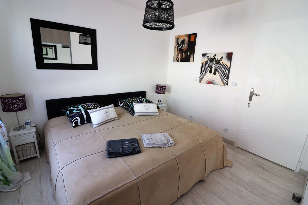 Sólríkt 135 m² hús, þægilegt, ein hæð. Stór, lokaður garður, útiborð, garðhúsgögn, dekkjastólar, sólhlífar... umlykja upphituðu saltlaugina. Tvö svefnherbergi, fataherbergi, stór stofa, baðherbergi með sturtu, 2 aðskilin salerni og þvottahús. Öll þægindi og tæki eru í boði fyrir notalega dvöl: loftkæling, grill, þvottavél, þurrkari, kaffivél,... Lokað hjólageymsla. Einkabílastæði. Reyklaust hús.