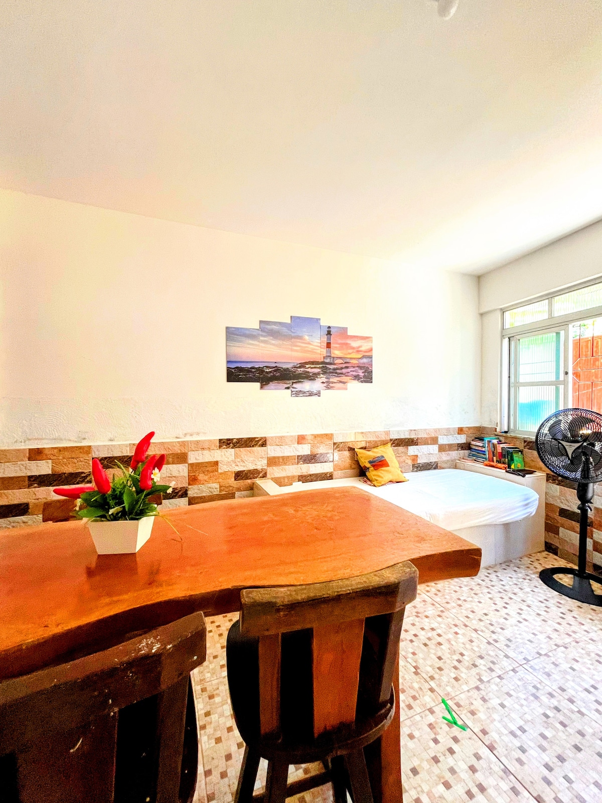 Um refúgio confortável e funcional em Morro de São Paulo, perfeito para casais ou pequenas famílias que valorizam boa localização e praticidade. Localizado no térreo, no mesmo prédio do Lagoa Apê, este apartamento oferece fácil acesso, ótima ventilação e uma estadia tranquila, a poucos minutos a pé do coração da vila.