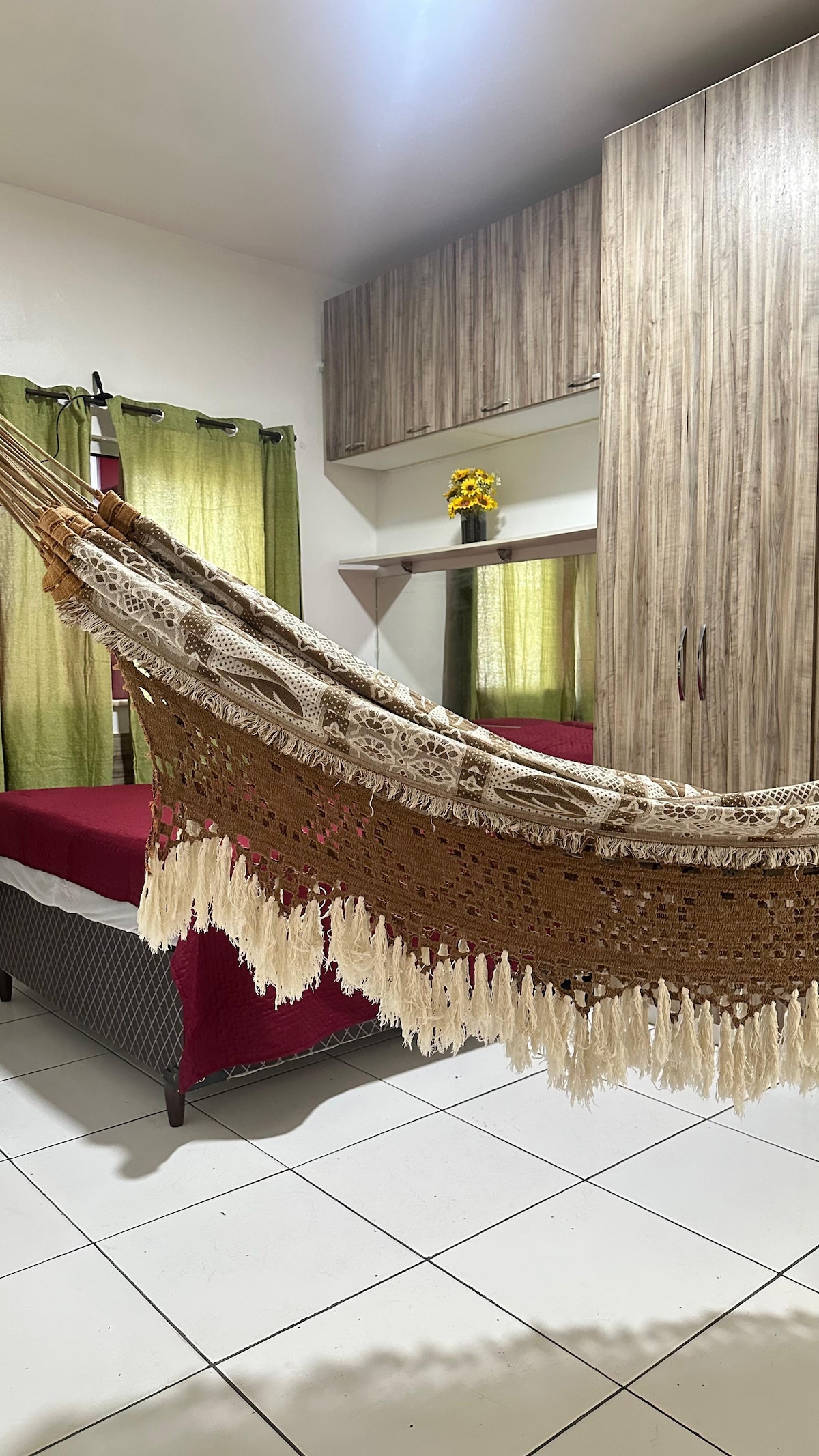 Lítið einkastúdíó á jarðhæð, 500 metrum frá sjúkrahúsinu Santa Maria í Ananindeua. Það er með 01 hjónarúm, 01 einstaklingsrúm og 01 baðherbergi. Notkunin er frátekin með húsgögnum, rúmi og baðmull, loftkælingu, ísskáp, eldavél, sjónvarpi, örbylgjuofni, kaffivél, blandara, samlokugerð, interneti og 01 bílastæði. Við erum staðsett við eina af helstu og annasömustu götum Ananindeua. Þess vegna, með fyrirvara um hugsanlegan hávaða, vegna hreyfingar ökutækja.