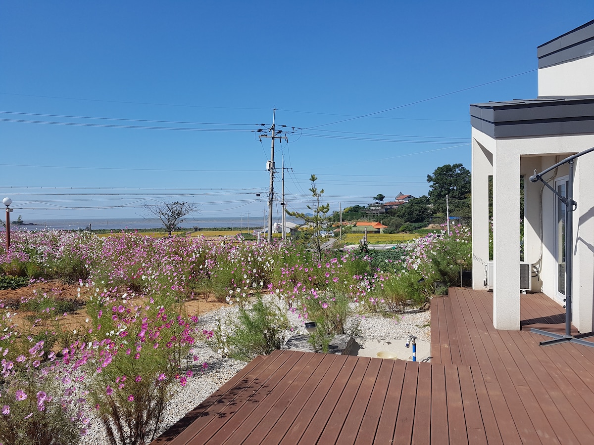 Það er elsta Sindo-eyjan meðal þriggja bræðra og eyjanna á móti Incheon-alþjóðaflugvellinum. Það er Sindo, hópur eyjaferða þar sem þú getur farið yfir hafið tímanlega án þess að hafa bíl. Shindo Dirt House er lítið lífeyri sem samanstendur af 42 pyeong af aðalhúsinu, 8 pyeong af Dongwol Exodus og 3 deildum Seoilac. Þetta er lítið en heilsusamlegt hús byggt með hvítum sedrusviði leir og ondol og þýsku steinum. Ég vona að þú takir á móti breiðum sjó í hjarta þínu frá flóknu miðborginni og í stöðuga rauða leirhúsinu. Fólk sem hefur gaman af fjöllum býr í langan tíma og fólk sem kann að meta sjóinn er viturlegt og lifir því hamingjusamlega. Við mælum með því að njóta fjallanna og hafsins á sama tíma.