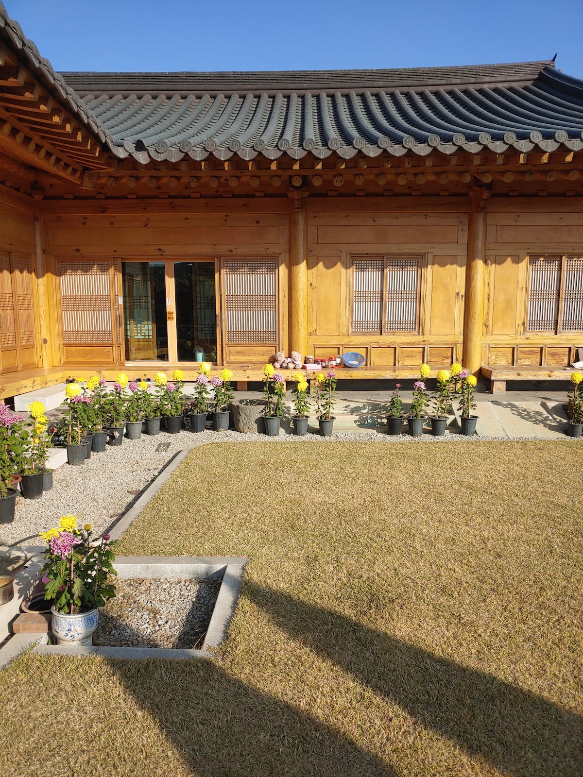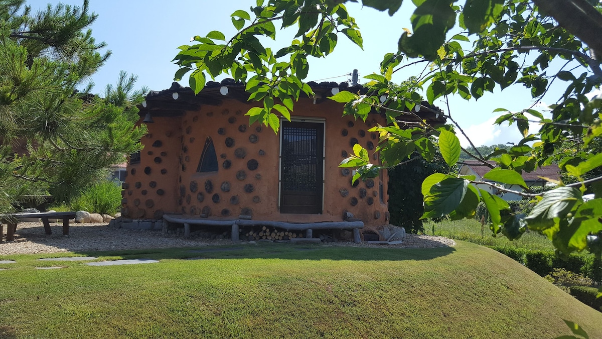 Við bjóðum þér að heimsækja hefðbundnu hanok, Cheongsongjae, sem er umhverfisvænt virki sem er einungis byggt á loess og kóresku gúmorong furu. Cheongsongjae samanstendur af glæsilegu hliði og sætum garði. Það samanstendur af aðalhúsinu og viðbyggingunni. Viðbyggingin er umhverfisvæn ondol-herbergisbygging sem fyllir herbergið af hlýju með skorsteini og hefðbundinni agung-hönnun leigusala. Á þann hátt sem er óviðjafnanlegur með nútímalegum könnum á köldum vetrum verður þetta þægilegur og afslappandi staður til að hita upp þreyttur hugann og bráðna þreytuna. Þú getur notað viðaukann einn og sér og sem fullkomlega sjálfstætt rými með salerni, ísskáp og eldhúsi í herberginu er þægilegt að upplifa hanok í hefðbundinni höll og hefðbundnu fjölskylduherbergi. Ondol-herbergið þar sem furu og eik er tekið af í agung og hitað upp herbergið Þú getur upplifað heilsu með því að sofa. Kúlusalinn er vinsælli salur fyrir þá sem hugsa um heilsu að vetri til.