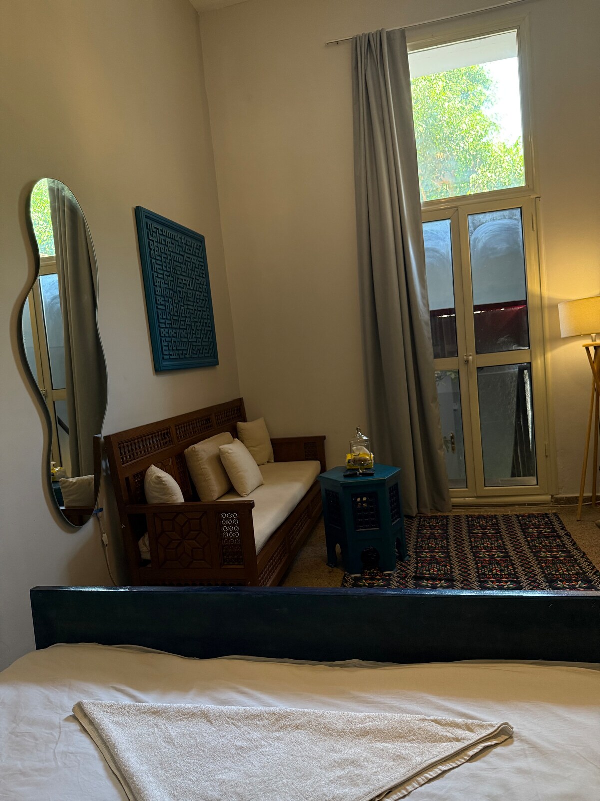 Aðeins eignir á skrá í Zamalek eru í Zamalek. Aðrar eignir í nágrenninu eru bæði fjölmennar og hávaðasamar! sólríkt, notalegt og rólegt heimili þitt í Zamalek nálægt NÍLARÁNNAN, með SINAI bedúínastemningu og háum loftum, viðarhólfum, egypskum flísum og mósaíkbaðherbergi með loftkælingu og hitastilli Í listamiðstöðinni, 20 mín. frá EGYPTIAN MUSEUM, 15 mín. göngufjarlægð frá NÝJU göngusvæði til MIÐBORGS og 1 mín. göngufjarlægð frá neðanjarðarlest Umkringt sendiráðum, matvöruverslunum, veitingastöðum, kaffihúsum og börum. Líflegasti staðurinn í Kaíró!