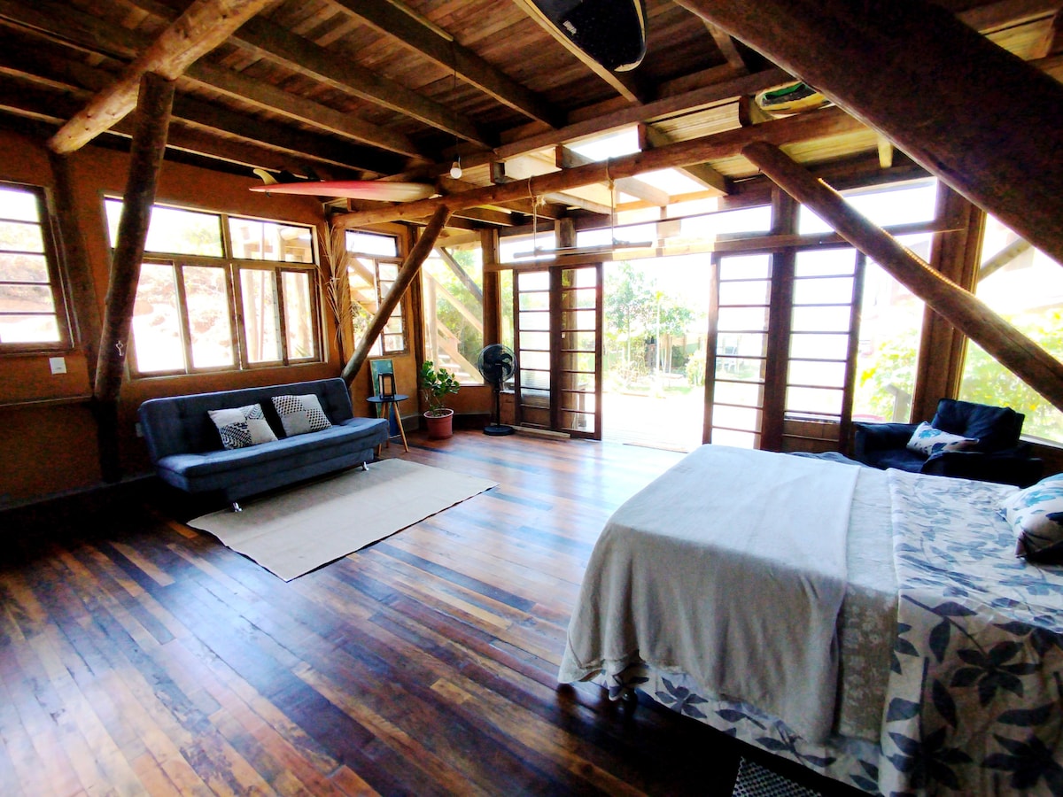 Loft's with rustic and industrial touches, which will certainly welcome and provide great experiences. It is 200 meters from Praia da Ribanceira, there are more beaches nearby: Rosa, do Luz, Vermelha, Barra de Ibiraquera, da Vila, Itapirubá, do Porto and D'Água. There are no natural beauties such as dunes and trails, they usually connect one beach to another. Three units for rent, if the desired date is reserved, look for our other ads.