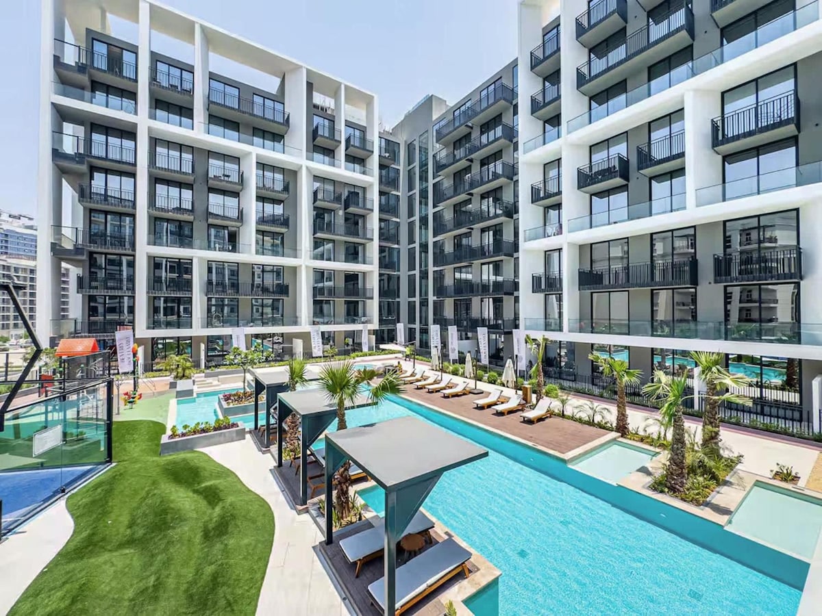 Lúxus 1-BR afdrep í Dubai Hills, 5 mín frá verslunarmiðstöðinni