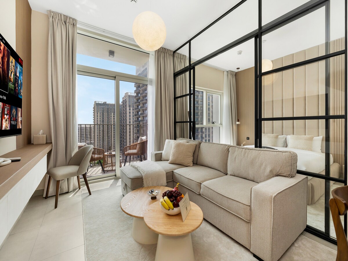 Stílhrein 1 herbergis íbúð með útsýni yfir Burj Khalifa