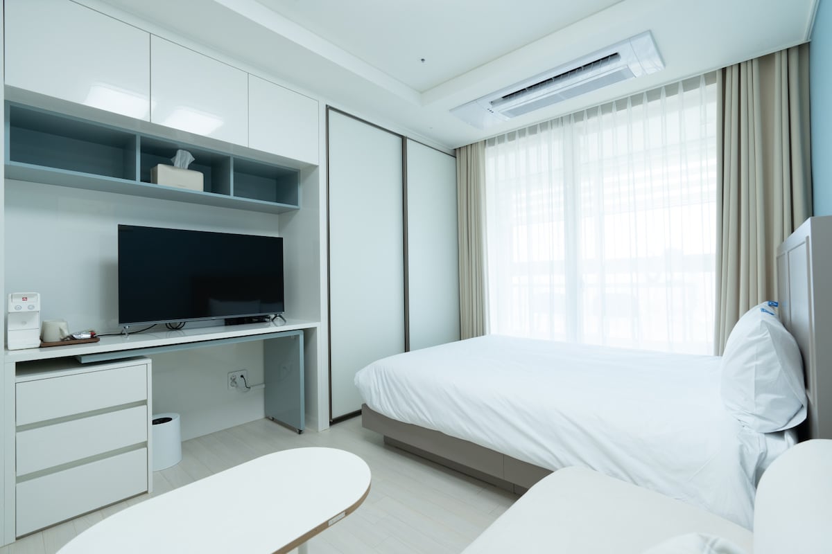 Notalega hótelið er með fjölbreytt efnisherbergi sem gera það að verkum að þú þarft að hvílast í samræmi við óskir þínar. Upplifðu sérstakar minningar um hvíld í samræmi við óskir þínar með fjölskyldu, elskendum eða vinum. [innritun/útritun] Virkur dagur: 17: 00 ~ 13: 00 Helgin: 21:00 - 12:00 [Hefðbundinn fjöldi fólks/hámarksfjöldi] Standard 2 people/Max 2 people [Leiðarlýsing] Cheongnyang City Nature Park Station 5 mínútur með bíl/12 mínútur á fæti Suinbundang Line Songdo Station 6 mínútur með bíl Cheongnyang-garður í 10 mínútna akstursfjarlægð 15 mínútna akstur að Aamdo Coastal Park 10 mínútur að ganga frá Songdo GC golfvellinum