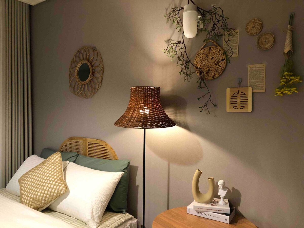 Þetta er frábær gististaður með fjölskyldu og vinum The penthouse is located on the top floor of the 21st floor and is convenient to the rooftop garden (there is a photo zone on the rooftop) Þú getur horft á sólarupprásina og sólsetrið í gegnum gluggann Gestir segja að þetta sé veitingastaður með útsýni og að kvöldinu ljúki. Þetta er herbergið með besta útsýnið í himneskum borgum. Á fyrstu hæð er hundakaffihús á 1. og 2. hæð Í hverfinu er aðstaða til að búa í hverfinu eins og matvöruverslun. Hann er á tveimur hæðum. -1 Lúxusrúm í king-stærð á 1. hæð - Það eru 2 ofur einbreiðar dýnur á 2. hæð. 🛋Í sófanum eru 2 lúxus Tongjuk-sófar fyrir fjóra (handgerð bong og grautur sem hægt er að nota sem rúm) og aðrar mottur Hún er útbúin og allt að 8 manns geta tekið á móti gestum (Viðbótargjöld verða innheimt af 7 eða fleiri einstaklingum)