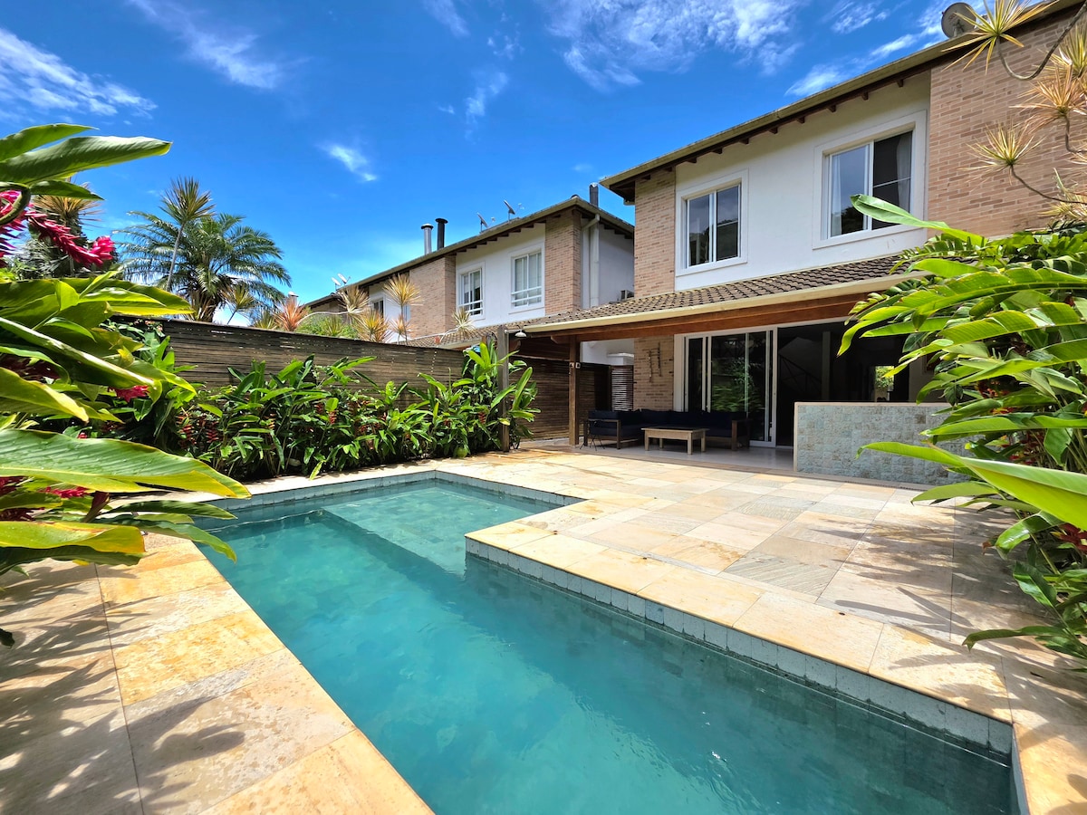 Fallegt hús í Maresias sem hefur verið endurnýjað að fullu með innblæstri í Miðjarðarhafsstíl, aðeins nokkrum metrum frá ströndinni í afgirtu samfélagi og fullkomlega öruggt. Þetta hús er tilvalinn staður til að verja fríinu með fjölskyldu og vinum í afslappandi og náttúrulegu umhverfi. Það er staðsett í Maresias, við strönd São Paulo, í aðeins 5 mínútna göngufjarlægð frá ströndinni!