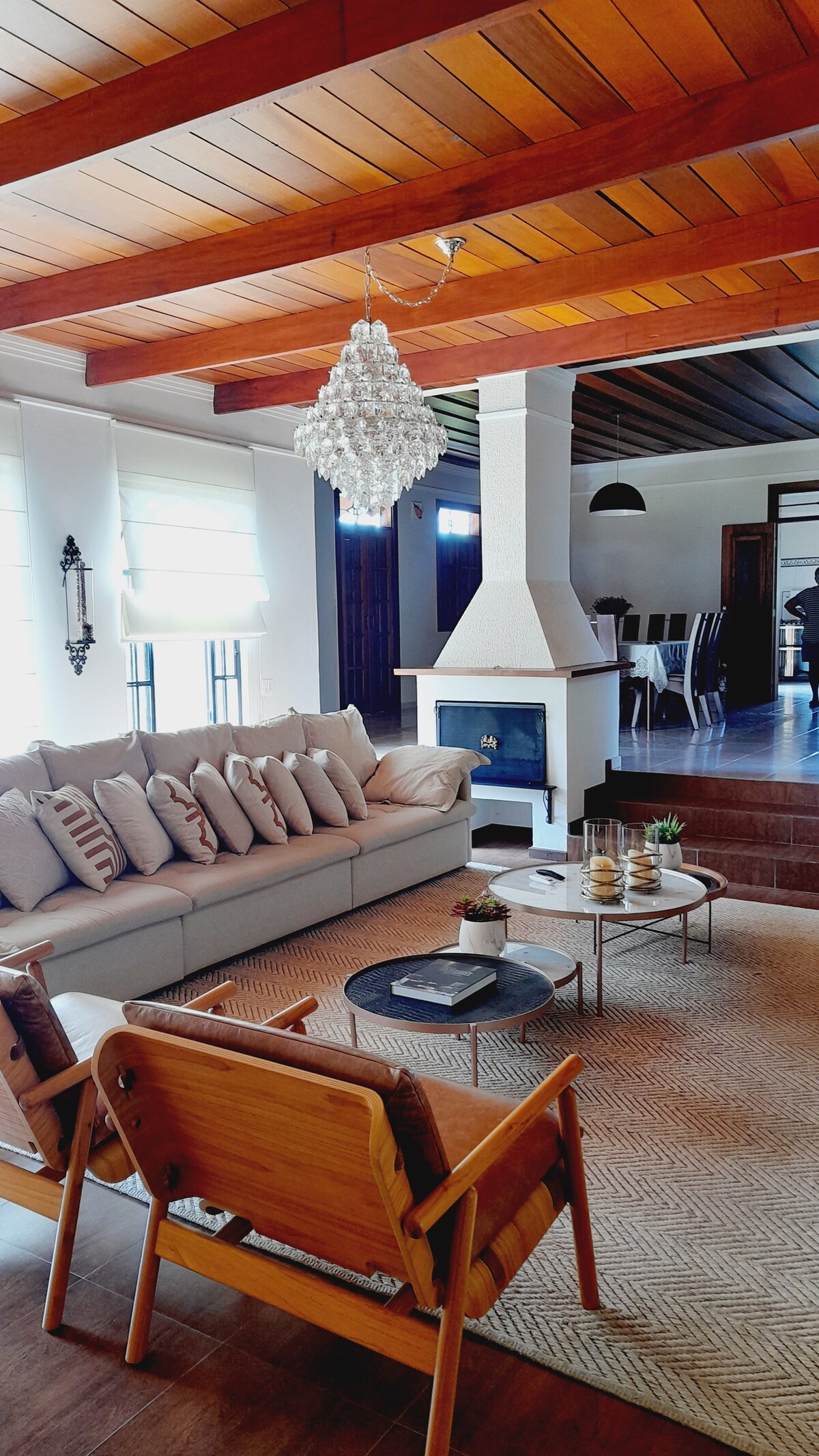 Nálægt Viracopos flugvelli í 12 mínútna fjarlægð frá miðbæ Indaiatuba, allt umkringt og mjög öruggt. Gott aðgengi og með viðskiptum í nágrenninu. Rúmtak 15 manns, 4 svefnherbergi, 4 baðherbergi, stofa, eldhús með öllum áhöldum, allt með loftviftu, 3 ísskápar og stór eldavél. Svalir þaktar borðum og stólum fyrir 20 manns, sundlaug, fótboltavöllur, leikjaherbergi og grill með ofni og viðareldavél (efst)! Við leigjum ekki út fyrir viðburði eða veislur, þú getur ekki hljómað hátt!