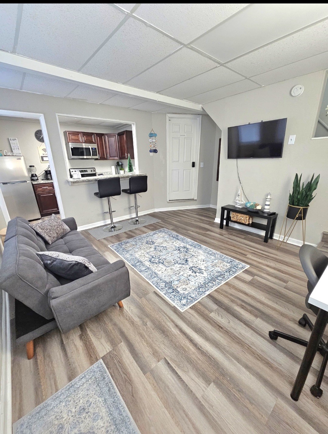 1 herbergja svíta m/ sérbaði. Þú getur notað hliðarhurðina til að auðvelda inngöngu. Eldhúskrókur, þar á meðal lítill ísskápur, örbylgjuofn, hitaplata, keurig, croc pottur, brauðrist. 1 ökutæki úthlutað bílastæði í innkeyrslu. Diskar, hnífapör, aðrar nauðsynjar í eldhúsi. 50” snjallsjónvarp. Stór útdraganlegur sófi. Staðsett nálægt Kempsville og Indian River gatnamótum og I-64. 10:00 útritun. VINSAMLEGAST SKOÐAÐU MYNDIRNAR OG LESTU MYNDATEXTA! Vinsamlegast sendu mér skilaboð í einkaskilaboðum í stað þess að skrifa aðeins neikvæða yfirferð svo ég geti leyst úr málinu. Ekkert ræstingagjald.