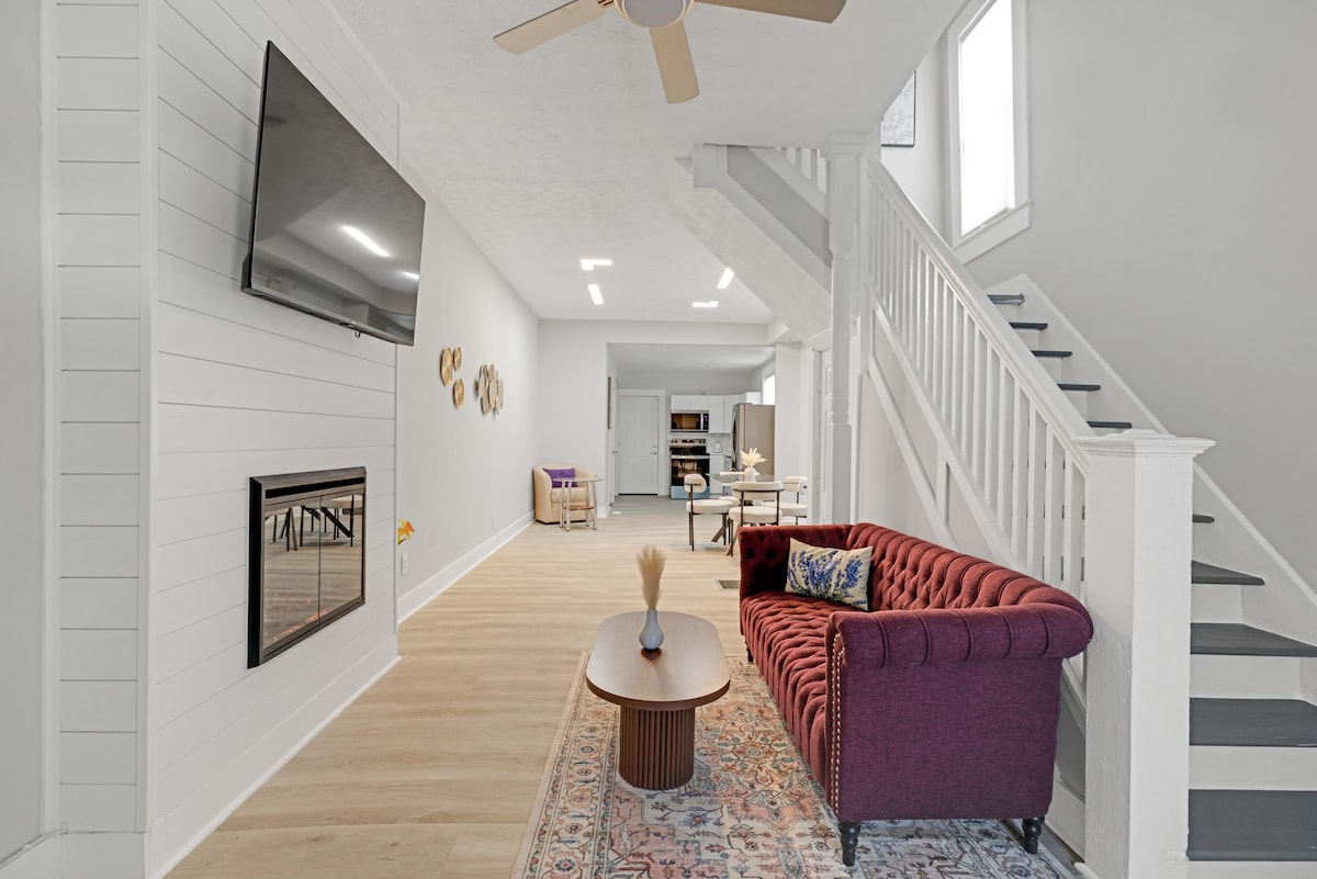 Öll þægindi heimilisins á meðan þú vinnur. Búðu eins og heimamaður í Surf House. Þetta heimili er innblásið af sumrum í Huntington Beach, Kaliforníu, og blandar saman nútímalegri hönnun og afslappaðri brimbrettablæ. Við erum staðsett í einu af eftirlætishverfum Indy og bjóðum upp á afslappað andrúmsloft með þægilegum gönguferðum að matsölustöðum, líkamsræktarstöðvum, verslunum og næturlífi. Surf House er fullkomin miðstöð fyrir þig.