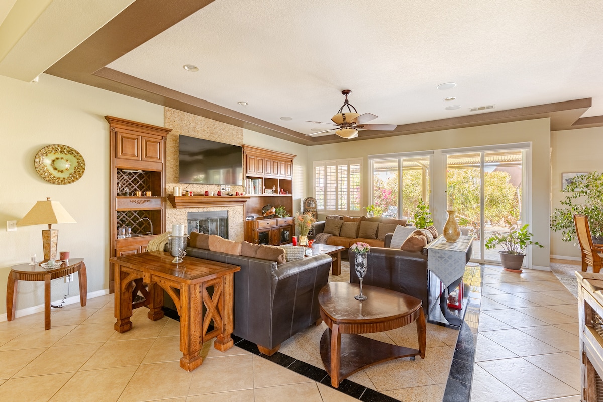 Farðu í friðsælan flótta við „Casa Tranquila“☀. Þægindi þín eru skuldbinding okkar til að upplifa óviðjafnanlegt frí! → Spectacular Pool & Spa Oasis: Saltvatnslaug, upphituð heilsulind, með yfirgripsmiklum golfvelli og fjallaútsýni. → Paradís við sundlaugina og afþreyingarmiðstöð:Sólsetur og grillveislur við stóru eldgryfjuna, með stokkabretti og foosball-áskorunum með vinum. → New Speakeasy fyrir póker, stuðara laug, borðtennis, píla og lifandi íþróttir í sjónvarpinu Ógleymanleg dvöl þín bíður-BOOK NÚNA!