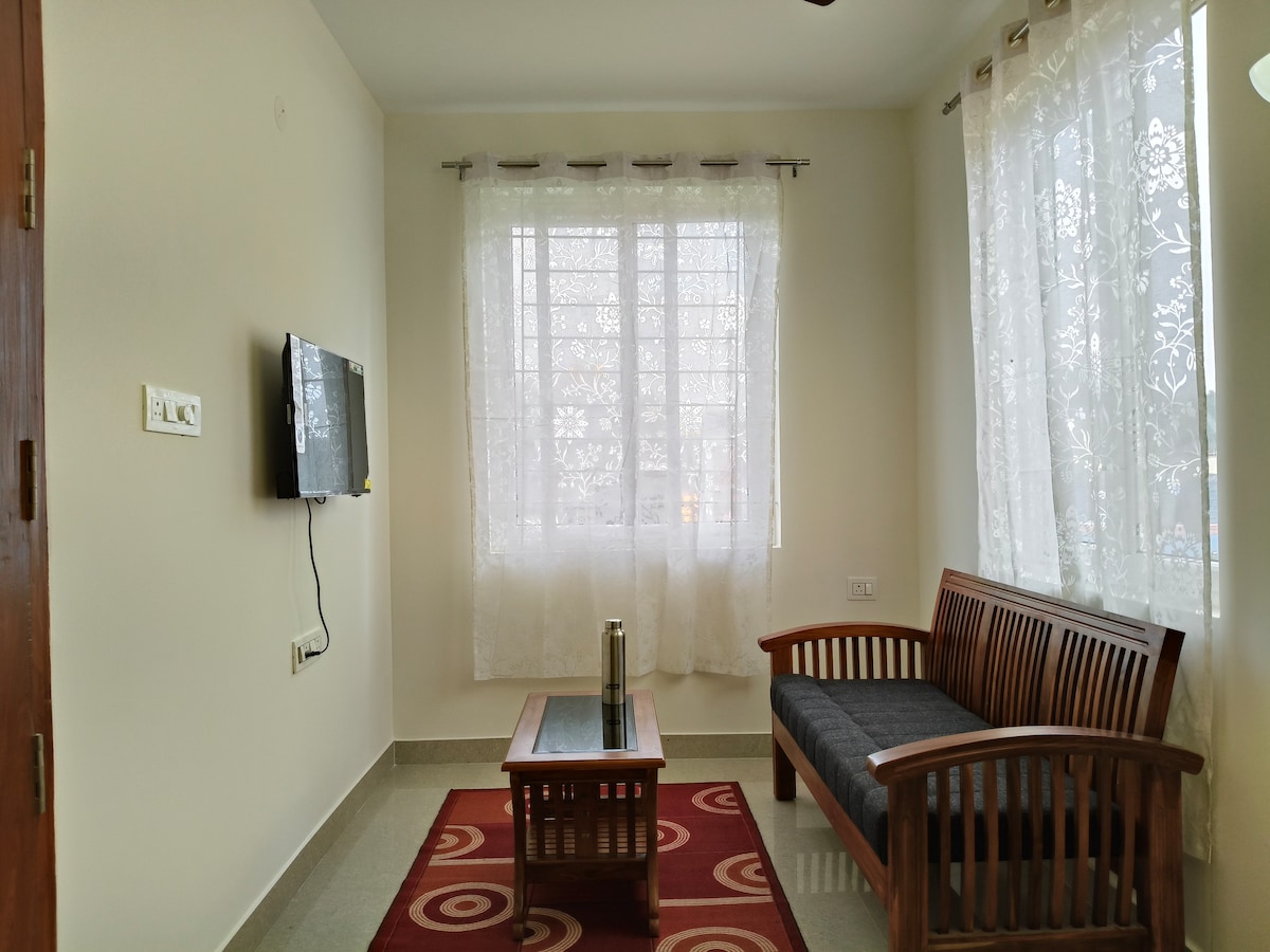 Ferðalög til Bangalore! Til að fara í frí, heimsækja fjölskyldu eða vini eða flytja í nýtt starf! Þarftu öruggt, hreint, miðsvæðis 1 eða 2 BHK í nokkra daga? Þetta er fullkominn staður fyrir það! Þú verður nálægt öllu þegar þú gistir á þessum stað miðsvæðis. Ferskt grænmeti, ávextir. egg, mjólk , matvöruverslun, efnafræðingur o.s.frv. eru í hálfri mín göngufjarlægð frá gististaðnum. Það er aðeins 5 mín göngufjarlægð frá aðalgötunni sem er vinsæll staður. 12. Aðalaðsetur þess er að finna alla pöbba, veitingastaði og matsölustaði.