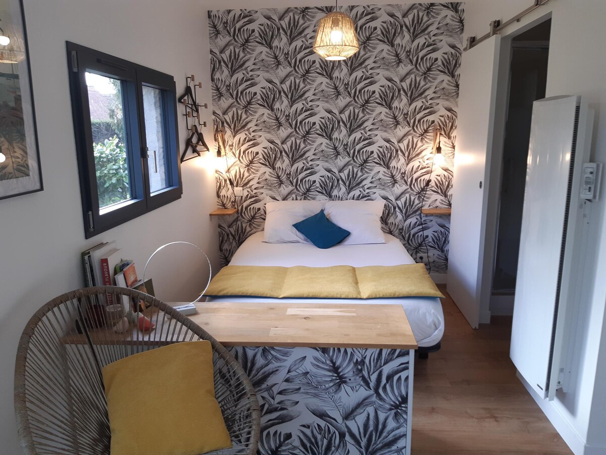 Maisonnette indépendant d'environ 40 m², située à 5 km du centre-ville d'Amboise, 12 km (15 min) de la sortie autoroute A10 et 21 km (25 min) de la sortie autoroute A85. RDC : cuisine équipée (réfrigérateur, plaque de cuisson, four, micro-onde, grille-pain, bouilloire + vaisselle), salle de bain avec WC, et salon Étage : 2 chambre avec lit 140/190, et 1 chambre-mezzanine au dessus du salon avec 2 lits 90/190 Extérieur: salon de jardin, barbecue Possibilité de prêt de vélo, English speaking