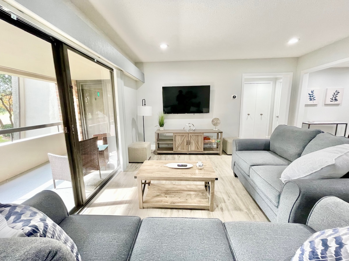 Upplifðu fullkomna blöndu af lúxus og kyrrð í þessari nýuppgerðu íbúð. Slakaðu á í sófanum á meðan þú horfir á 85"háskerpusjónvarpið með DVD-spilara eða njóttu ferska loftsins á svölunum með sætum utandyra. Queen-size rúmin munu tryggja afslappaðan svefn en baðherbergið býður upp á stað til að slappa af. Áhugaverðir staðir og veitingastaðir eru í aðeins nokkurra mínútna fjarlægð með bíl, þar á meðal PGA Valspar golfmótið í Innisbrook. ✔ Einkasvalir ✔ 85" háskerpusjónvarp ✔ Sæti utandyra ⬇️