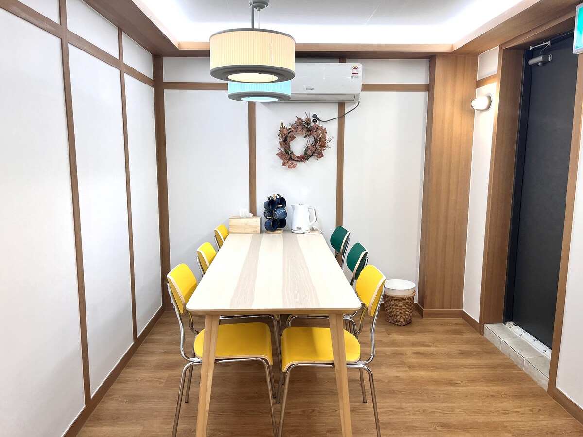 주요 유적지와 핫플레이스까지 도보로 이동할 수 있는 최적의 위치에 있습니다. 2023년 4월 재오픈! 황리단길까지 도보 10분 고속(시외)버스터미널에서 도보 10분 중앙시장까지 도보 2분(야시장 오후 6시~오후 11시) 보문단지(경주월드), 불국사 방향 버스 정류장에서 도보 3분 간단한 조식 무료 제공(토스트, 잼, 버터, 주스, 커피) 간단한 도시지도 무료 전문 업체에서 정기적으로 에어컨 청소 세스코(방충제 업체) 회원사 무료 와이파이 보드 게임 대여 로그인 없이 어느 방에서나 Netflix를 시청할 수 있습니다. 단점: 주차장이 3대정도로 협소합니다. 인근 골목주차장(비규제) 또는 공영주차장에 주차해주세요.