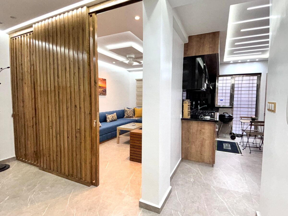 Apartment on Avenue Moulay Youceff parallel, in Avenue des Phares samanstendur af svefnherbergi með hjónasvítu, eldhússtofu, fullbúinni Íbúðin er 400m frá Carrefour talborjt og er á rólegu og öruggu svæði. Þú getur lagt fyrir framan gistiaðstöðuna sem er vel þjónað með leigubílum og rútum sem við erum 1,5 km frá souk El had og 2,5 km frá sjónum. Gistiaðstaðan rúmar allt að þriggja manna hámarksrúm sem standa gestum til boða