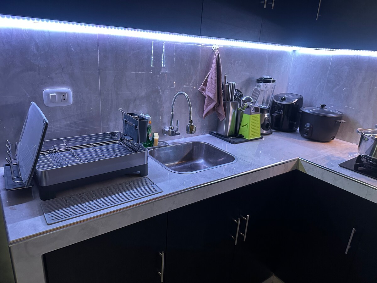 Slakaðu á í þessu svala, hljóðláta og stílhreina rými. Með aðgang að uppteknum Av. NAVARRO CAUPER og Av. 28 DE JULIO, þar sem auðvelt er að finna almenningssamgöngur eða einkasamgöngur. Mini depa er staðsett nálægt héraðssjúkrahúsinu; í þriggja mínútna fjarlægð frá Plaza Punchana, veitingastöðum og Nanay-brúnni, í tíu mínútna fjarlægð frá miðbænum og í 15 mínútna fjarlægð frá Aventura-verslunarmiðstöðinni. Staðsett á annarri hæð í glænýrri íbúð svo að þér líði eins og heima hjá þér.