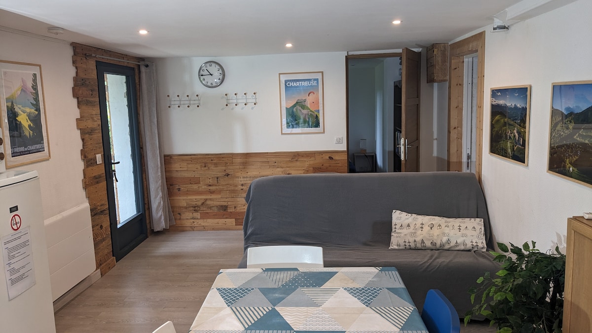 Studette staðsett á garðhæðinni í Savoyard húsi sem var endurnýjað árið 2022. Fallegt útsýni yfir fjöllin (Lanfon dents og Tournette), nálægt vatninu og ströndinni, nálægt miðbænum. Þessi gististaður er með eldhúskrók (1 helluborð, 1 lítill vaskur, 1 lítill ísskápur, 1 örbylgjuofn), borð og 2 stólar, sturtuklefi, hágæða sófa sem hægt er að breyta í rúm, 1 sjónvarp. Í boði er garðsvæði með sólbekkjum og útiborði. Einkabílastæði.