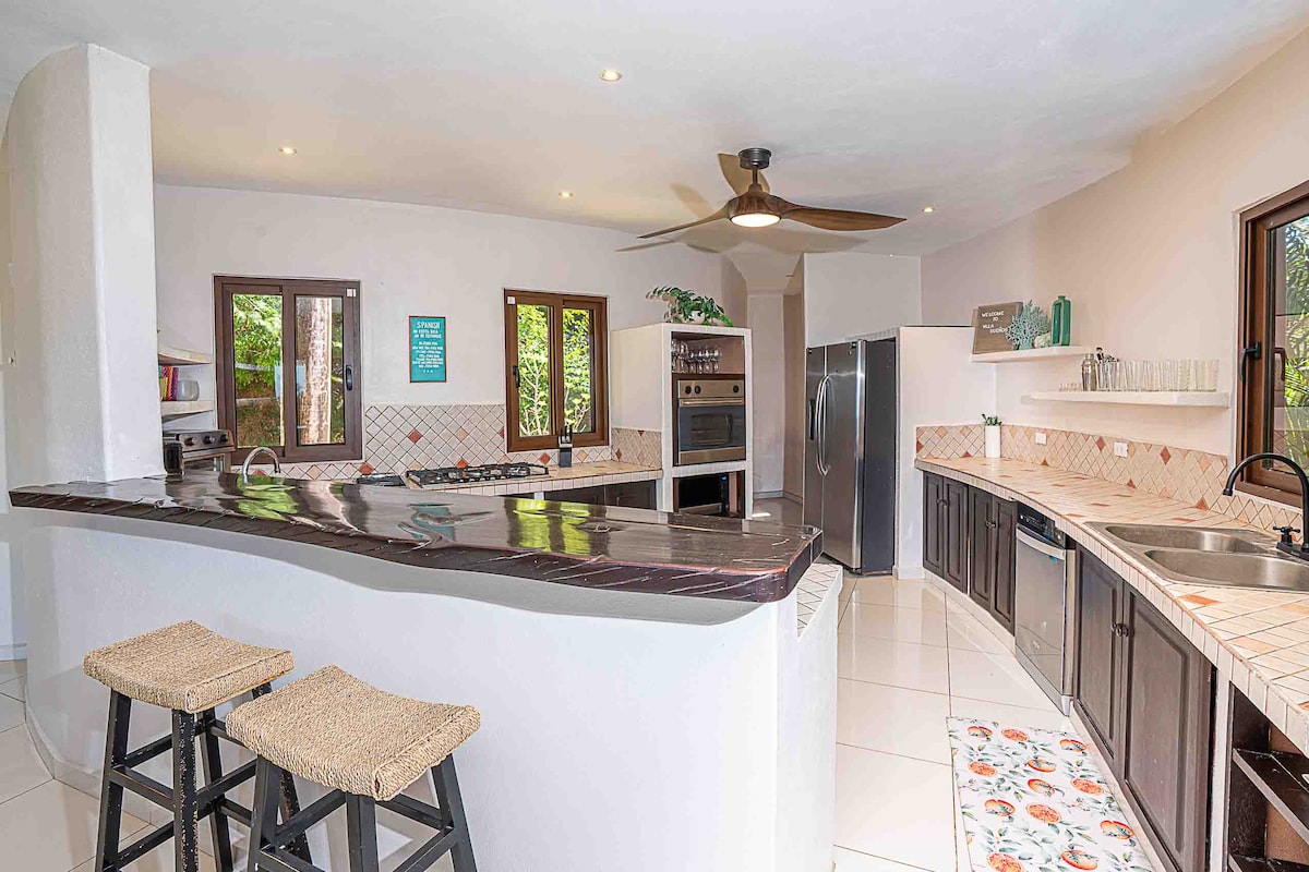 Verið velkomin til Maitri, notalega fríið þitt! Þessi villa með 2 svefnherbergjum og 3 baðherbergjum er hönnuð til þæginda og afslöppunar. Þú færð fullkomna blöndu af friði og ævintýrum í aðeins 8 mínútna göngufjarlægð frá ströndinni. Vertu í sambandi með 2x 200mbit háhraðaneti. Njóttu einkaþjónustu og aðgangs að Langosta Beach Club sem fylgir gistingunni! Við erum staðsett í Central Tamarindo við hliðina á Tamarindo-næturmarkaðnum. 1 klst. frá LIR (Líberíuflugvelli) og 4 klst. frá SJO (San Jose-flugvöllur) með bíl.