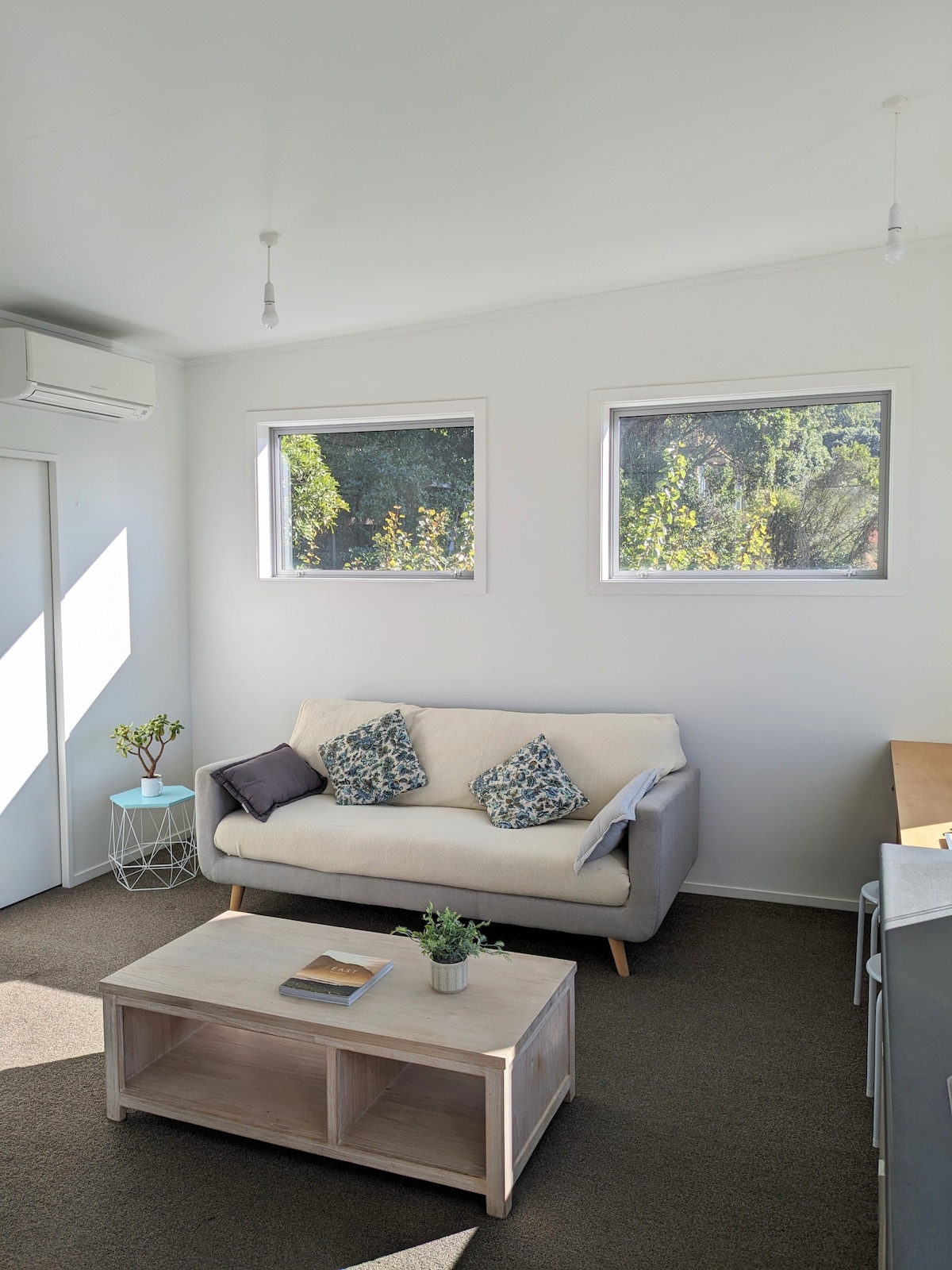 Hlýleg stúdíóíbúð í austurhluta Wellington. Nálægt flugvellinum í Wellington, Lyall Bay ströndinni, Kilbirnie og Akau Tangi/ASB íþróttamiðstöðinni. Íbúðin er sjálfstæð eining á jarðhæð tveggja hæða húss. Við búum á efstu hæðinni með þriggja ára og nýfæddum dætrum okkar og því er ekki óvænt að heyra í börnum. Í framhlið byggingarinnar eru sameiginleg þrep til að komast inn í eignina. Stór pallur er fyrir utan íbúðina með þvottalínu.