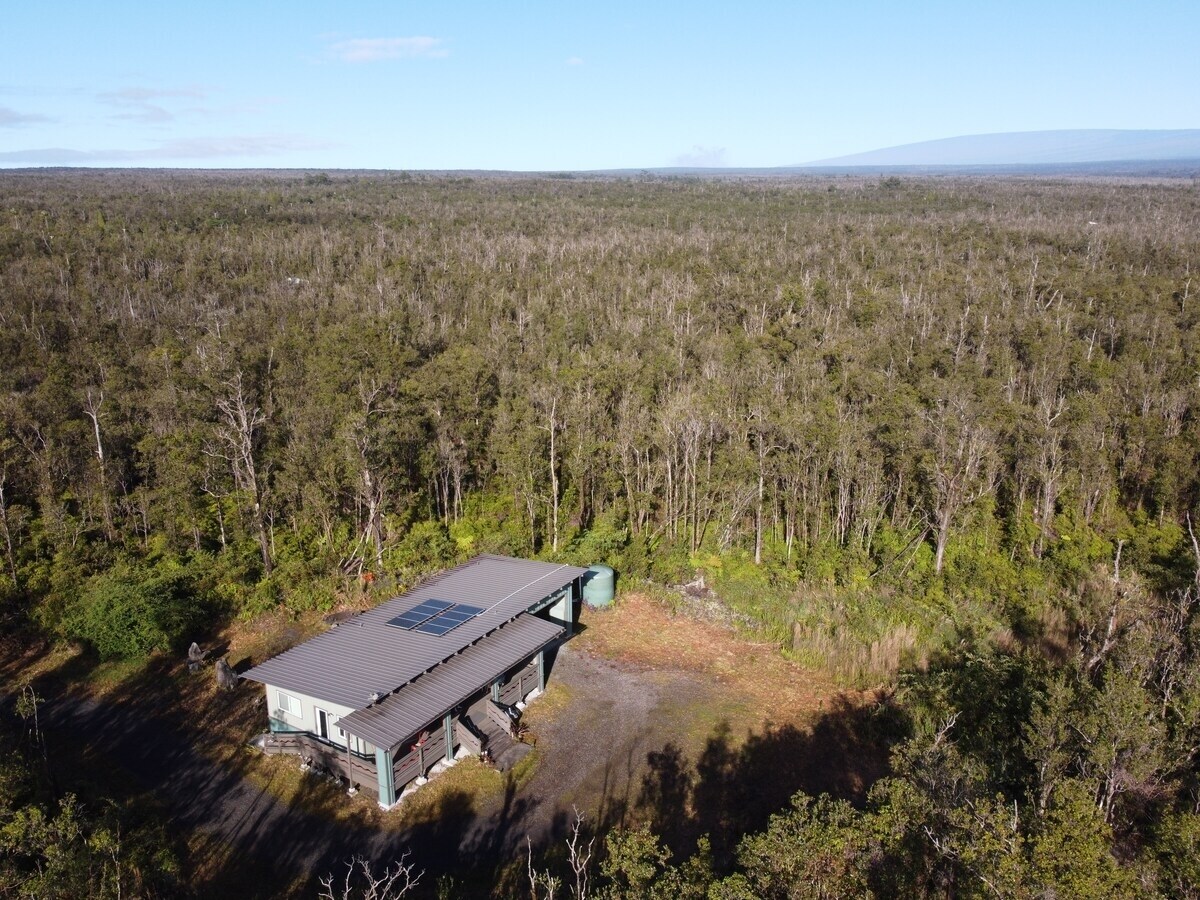 Hreinn, bjartur og vel útbúinn bústaður okkar er í 5 mínútna fjarlægð frá Volcanoes-þjóðgarðinum í listamannasamfélaginu Volcano Village. Þú munt hafa allan bústaðinn út af fyrir þig, umkringdur gróskumiklum regnskóginum og innfæddum fuglasöng. Sestu á morgnanna á einkalanaíinu þínu með kaffibolla í Kau á meðan þú nýtur sætabrauðs, ávaxta og jógúrts frá gestgjafanum. Hverfið okkar er staðsett við jaðar skógarins og þar er að finna hauka, uglur og nokkrar fuglategundir sem eru landlægar á Stóru eyjunni.