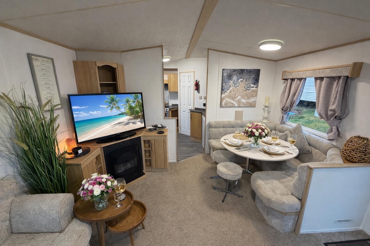 Við kynnum 12 Carter's Paddock sem er tilvalinn staður fyrir fríið þitt. Í hinum fallega Roebeck Country Park býður heillandi, opinn skálinn þér að slaka á og slaka á. Sannarlega heimili að heiman. Þessi gæludýravæni skáli er með stílhreina, nútímalega innréttingu, fullbúið eldhús, 2 tveggja manna svefnherbergi (eitt en-suite) og fjölskyldubaðherbergi. Fegurð 12 Carter's Paddock nær út á rúmgott þilfarsvæði. Þetta er tilvalinn staður með sólbleyttu fyrir morgunkaffi eða kokkteila á kvöldin.