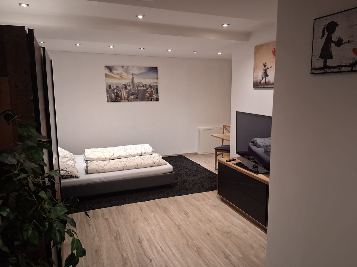 Slakaðu á og slakaðu á á þessum rólega og stílhreina stað í nálægð við München. Njóttu þín frá órólegu miðborg München í nokkrar mínútur og upplifðu afslappaða andrúmsloftið í Ismaning sem mest aðlaðandi sveitarfélagið í norðurhluta München. Nútímalega 30 fermetra íbúðin er staðsett í vel hirtu íbúðarhúsnæði (3 einingar) á alveg rólegum stað. Talaðu við okkur á öllum mögulegum svæðum þar sem eigendur okkar eru fúsir til að aðstoða þig.