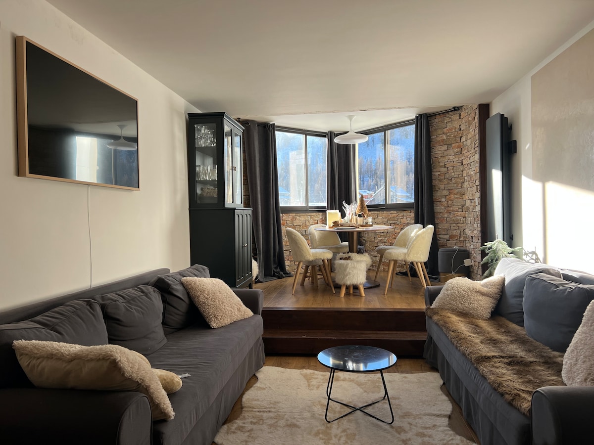 Á SNJÓNUM munt þú láta tælast af þessari miklu hágæðaíbúð með 3 svölum og mjög stórri verönd (40 m2). Á 6. hæð í Valletta-bústaðnum er stór stofa/SAM (30 m2), svefnherbergi, barnaherbergi, hjónasvíta (svefnherbergi/fataherbergi/skrifstofa), baðherbergi (bað+salerni) og baðherbergi (sturta+salerni). 11 rúm á 100 m2 Frábær staðsetning við rætur brekknanna og nálægt verslunum Möguleiki á að leigja rúm og handklæði sé þess óskað.