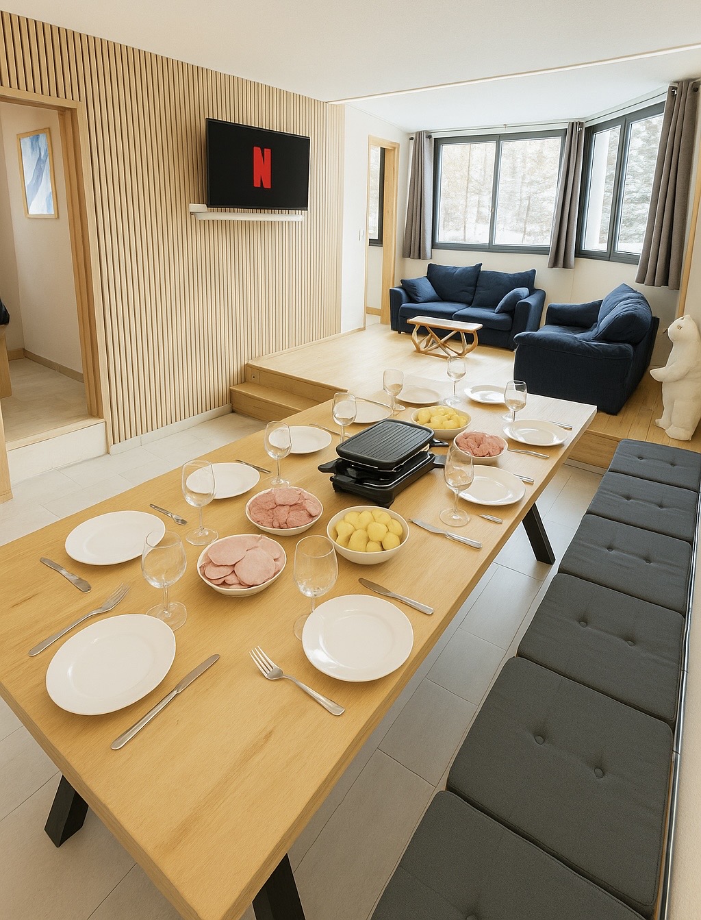 Direct access to the pistes from the building door. Sleeping for 4 people Sufficiently distant from shops and public facilities to be quiet and peaceful but: Access to the shops and other facilities accessible through the inside of the building at less than five minutes walk. South facing balcony. Renovated Well equipped kitchen Ideal for 2 - 4 people. Area 29 m² Dedicated internet access (Wifi or ethernet), chromecast