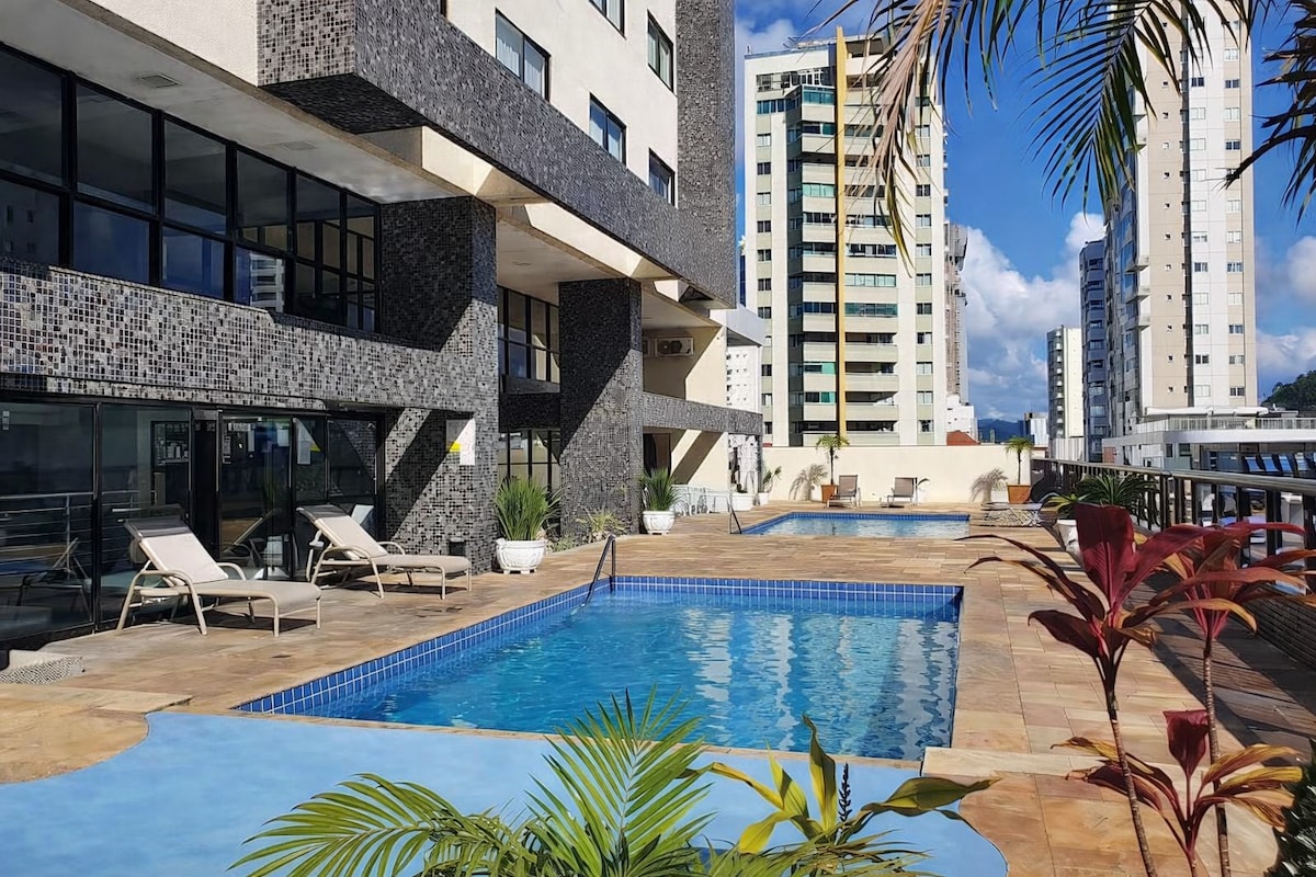 Ótrúlegt útsýni til sjávar Brava Beach. Í ap er 1 svefnherbergi með king-rúmi og loftkælingu, rúm- og baðföt, 1 fullbúið baðherbergi, 1 stofa með sjónvarpi, þráðlaust net, vinnupláss, uppdraganlegur sófi sem snýr að rúmi og loftkælingu, fullbúið eldhús, þjónustusvæði með þvottavél og 1 bílastæði. Örugg íbúð með íbúð allan sólarhringinn Fullorðins- og barnalaug, líkamsrækt, markaður, leikjaherbergi, samkvæmisherbergi, söluturn, leikherbergi, leikvöllur, gæludýrasvæði og þvottahús.