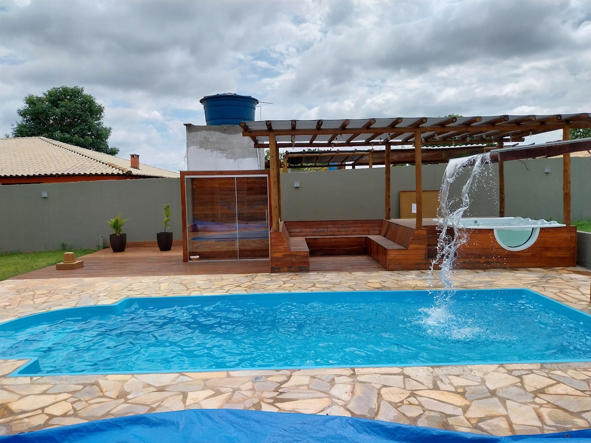 Farðu með alla fjölskylduna á þennan frábæra stað með nægu plássi til að skemmta sér. Búið hús með upphitaðri sundlaug, fossi, sundlaug (pool-borði) og fallegu sveitalegu borði. Tilvalið fyrir þig að eyða helginni í upphitaðri sundlaug á mjög rólegum stað. Gott aðgengi við Fernão Dias hraðbrautina, mjög rólegt hverfi í 10 mínútna fjarlægð frá miðbæ Igarapé. Þetta rými býður þér upp á móttökur fyrir vini og fjölskyldu.