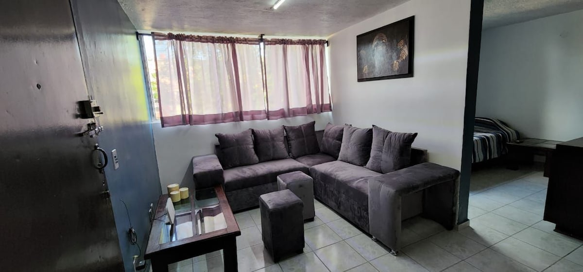 Lúxus og falleg íbúð með art deco hönnun og húsgögnum, slakaðu á og njóttu útsýnisins vegna þess að hún er á 9. hæð og þar eru þægindi eins og falleg sundlaug, líkamsræktarstöð, yfirgripsmikil þakverönd, félagsherbergi, grillgrill, öryggi og lyftur. Í íbúðinni er eitt herbergi með queen-size rúmi, eitt fullbúið baðherbergi, þvottahús, fullbúið eldhús, ísskápur með ísvél og kaldur vatnsskammtari. Við útvegum 2 handklæði fyrir sturtu og 2 handklæði fyrir sundlaugina. Við bjóðum einnig upp á skoðunarferðir til borgar- og töfrabæja.