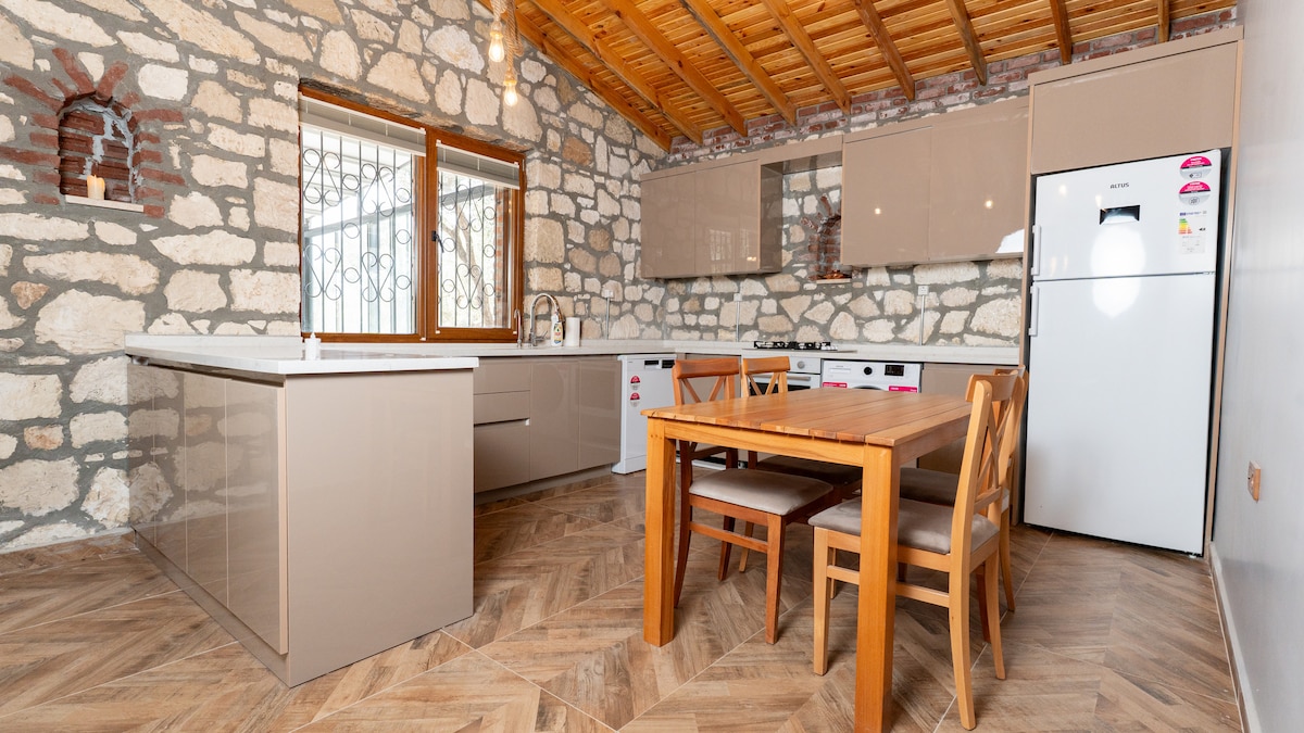 Það er nálægt miðju í þorpinu Şirince en á rólegum stað. Það eru tvö herbergi, eitt fyrir 3 manns og 2 manns. Það er sameiginleg verönd. Göngufæri við bílastæði