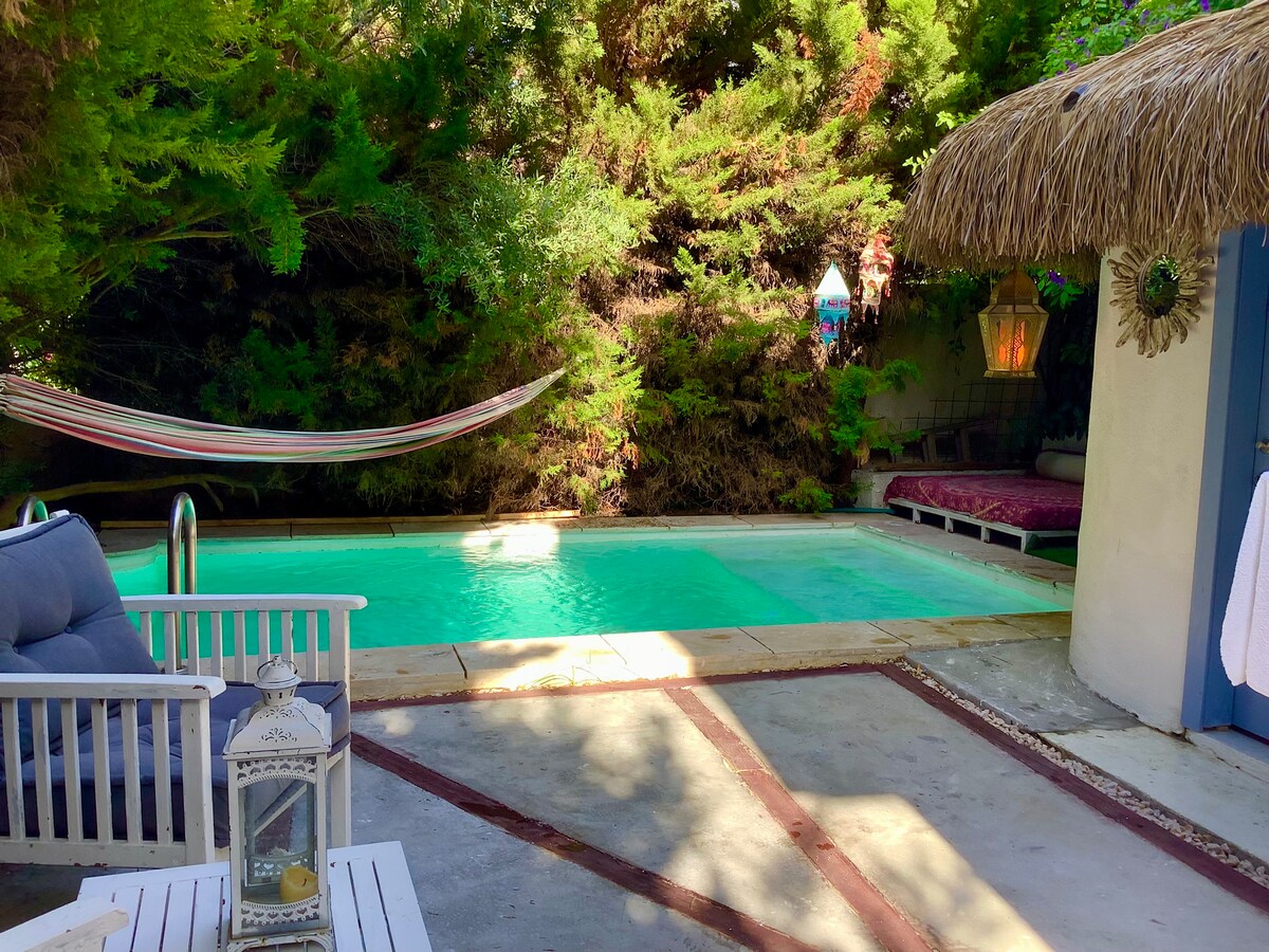 Þetta er sætt herbergi með sérinngangi í garðinum í húsinu okkar. Við getum ekki borðað morgunverð • herbergið okkar er aðeins hægt að nota fyrir snekkjuna. Sundlaugin er ekki í notkun. Héðan er auðvelt að komast á vinsælustu staðina á svæðinu...
