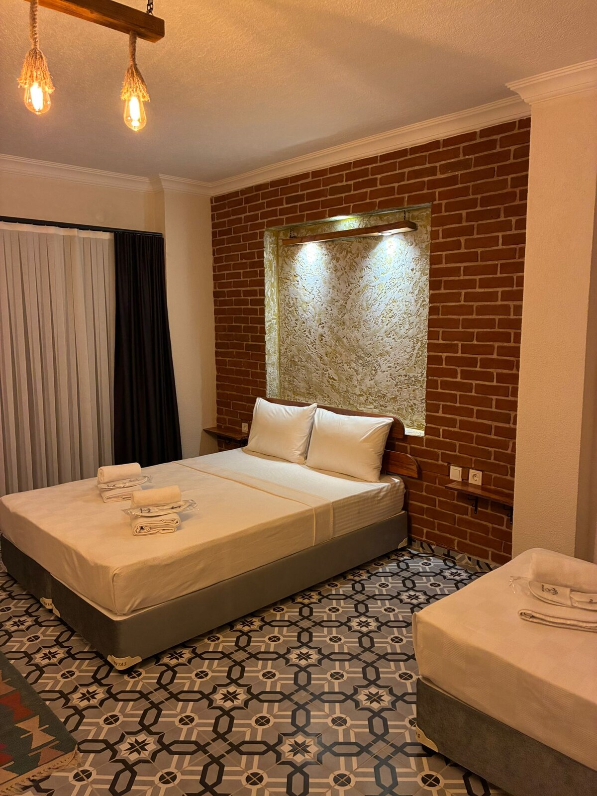 Maslina Zeytin odamızın özellikleri; ------------------------------------------ 1 adet double yatak 1 adet tek yatak ( ihtiyaç halinde 1 EK yatak konulabilir. ) TV, Wi-fi, Klima, Mini buzdolabı, Su ısıtıcı, Saç kurutma makinesi, Su, Soda, Çay, Kahve... hizmetimiz bulunmaktadır... NOT: Konaklama da kahvaltı dahil değildir. İstenirse anlaşmalı olduğumuz yere yönlendirileceksiniz.
