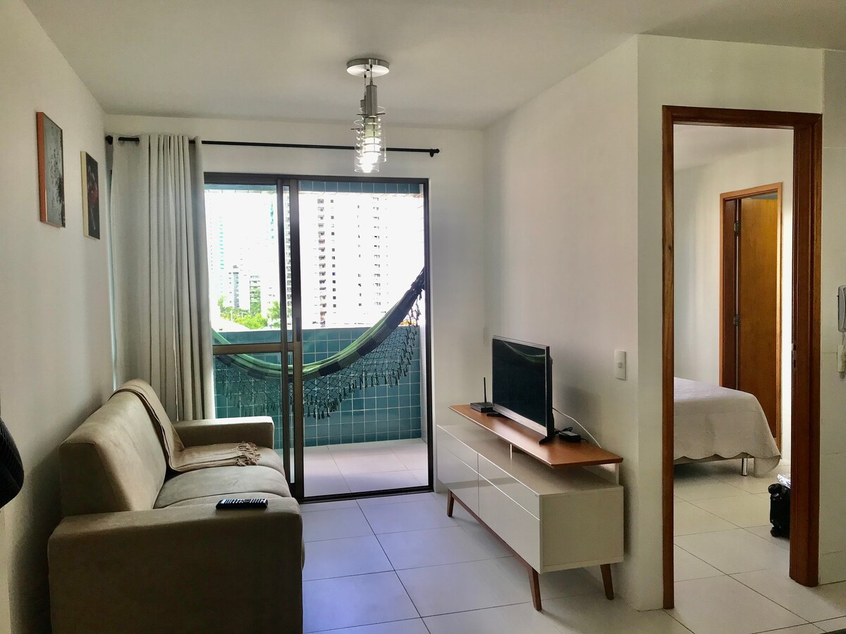 O Flat esta em uma excelente localização de Boa Viagem, quarto e sala, com cama de casal e um sofá cama, cooktop 2 bocas e microondas, 2 ar-cond (Split), 2 Smart Tv, wifi, armário, espelho, mesa de trabalho, mesa de jantar, utensílios e eletrônicos de cozinha, peças de cama e banho. Mobiliado, vaga de garagem(Confirmar no ato da reserva), moveis planejados, salão fitness. Próximo ao Shopping Recife (10 min a pé), a praia (10 min a pé) e em frente ao Big Bom preço (Supermercado com utilitários)