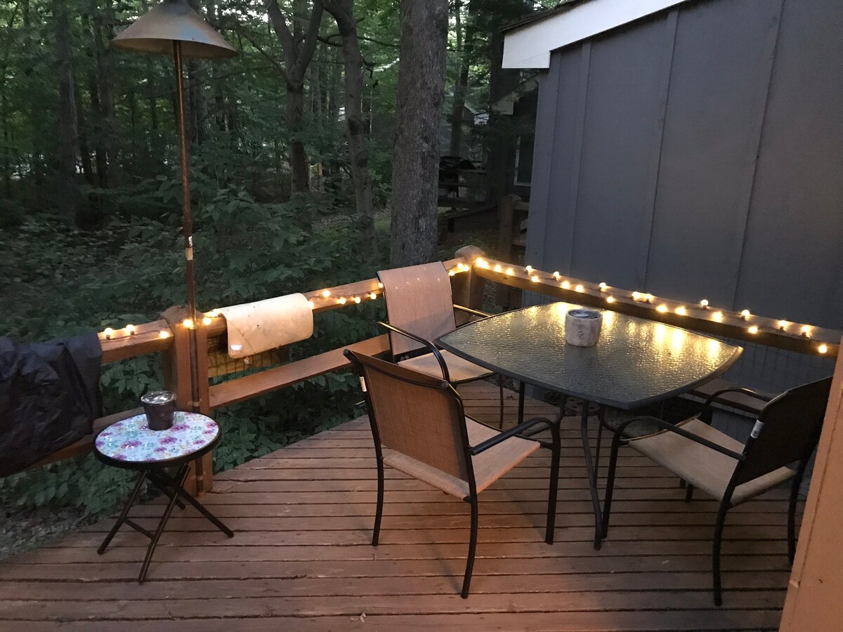Þessi skálakofi er í göngufæri við vatnið og stutt er í JFBB skíðasvæðið og golfvöllinn, marga veitingastaði, vatnagarðinn innandyra við Split Rock og fleira! Inniheldur 10 passa á Lake Harmony Beach. Hún er rúmgóð (tæplega 2.000 fet²) og er með bæði stofu og aðskilda fjölskyldustofu, borðstofu, fjögur svefnherbergi (aðalsvefnherbergið er með king-size rúmi) og tvö fullbúin baðherbergi. Gakktu að vatninu eða njóttu útsýnisins yfir dádýrin og villta kalkúninn frá tveimur stórum þilförum sem ráfa um eignina á hverjum degi.