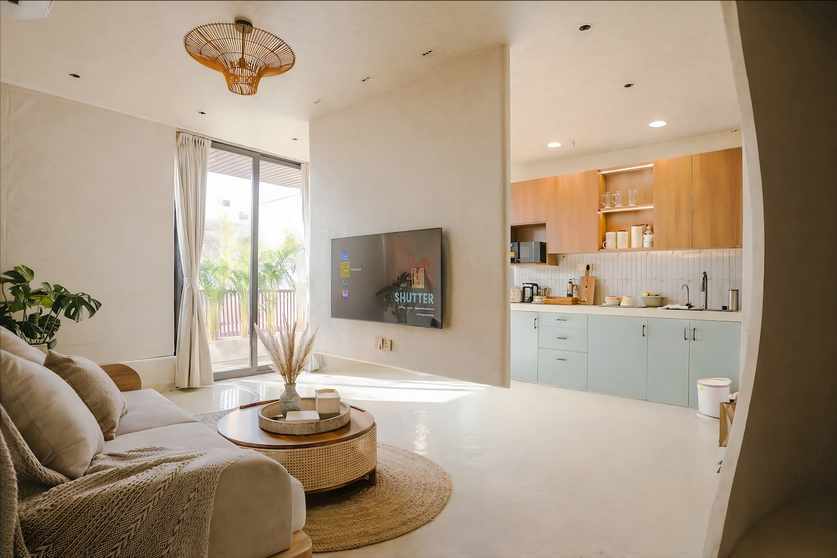 Step into a luxury 1BHK where boho charm meets modern indulgence. Thoughtfully designed with earthy textures, warm lighting, and premium finishes, this stylish escape feels both artistic and refined. Unwind in your private jacuzzi, sink into plush comfort, or enjoy immersive gaming for the perfect blend of relaxation and fun. Every corner is curated for aesthetic lovers and comfort seekers. A unique, elevated stay crafted for memorable moments.