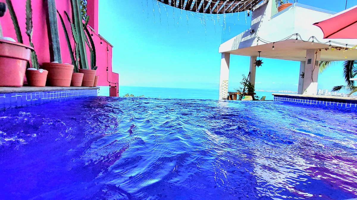Wake up to breathtaking ocean views and end your day with golden sunsets at this tropical comfy studio, just steps from the beach and Puerto Vallarta’s iconic Malecón/Boardwalk. Enjoy a cozy bed, AC, full kitchen, high speed internet, pools, terraces, a viewpoint with panoramic views and even fireworks every night. Perfect for couples or travelers seeking relaxation, comfort, and the best location to explore the city’s restaurants, attractions, art galleries, shops, and nightlife. 🌴✨